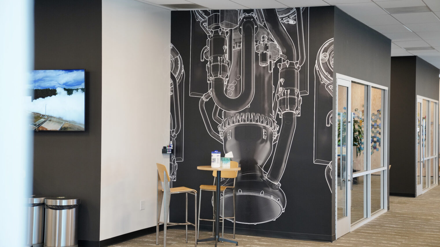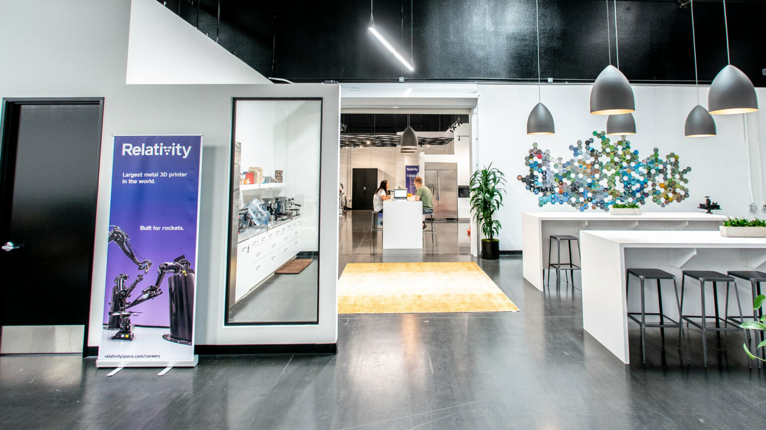 “We wanted a space that looked like the future, and blended creativity and science. We have several fine-art pieces in the office, along with futuristic LED lighting and large desks for each engineer. Our goal is to 3D print and automate rockets with robotics, and take a totally new approach to building the future of humanity in space. Our office is inspired by this mission. ”