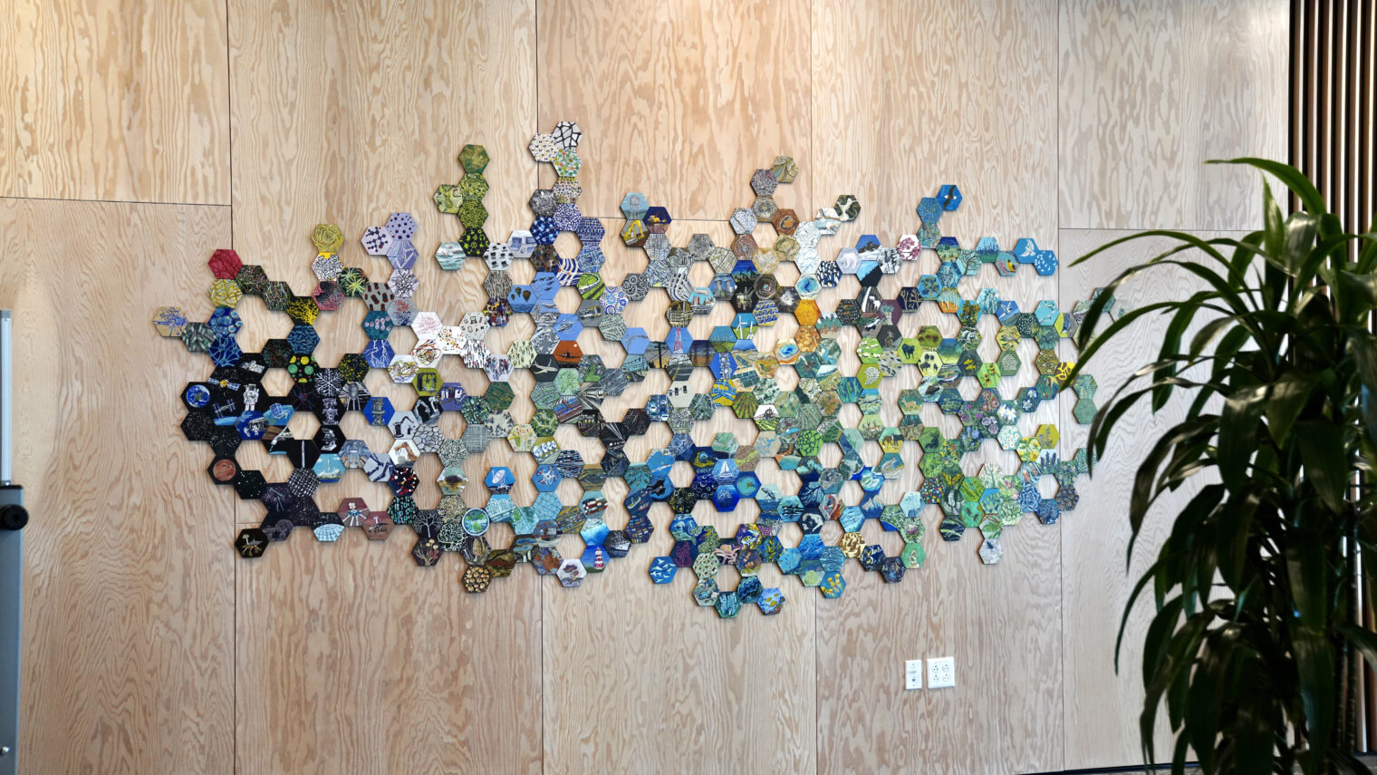 Linked is large-scale, mixed media paintings inspired by the networks which shape and connect our planet. Inspired by author Frank White’s concept of the “overview effect,” these works aim to create a renewed sensation of viewing Earth as if from space to more clearly see our interconnectivity from a new perspective. By merging biological, technological, and social systems across micro and macro timescales, Linked suggests we are evolving towards hive-like connectivity within a complex planetary society.