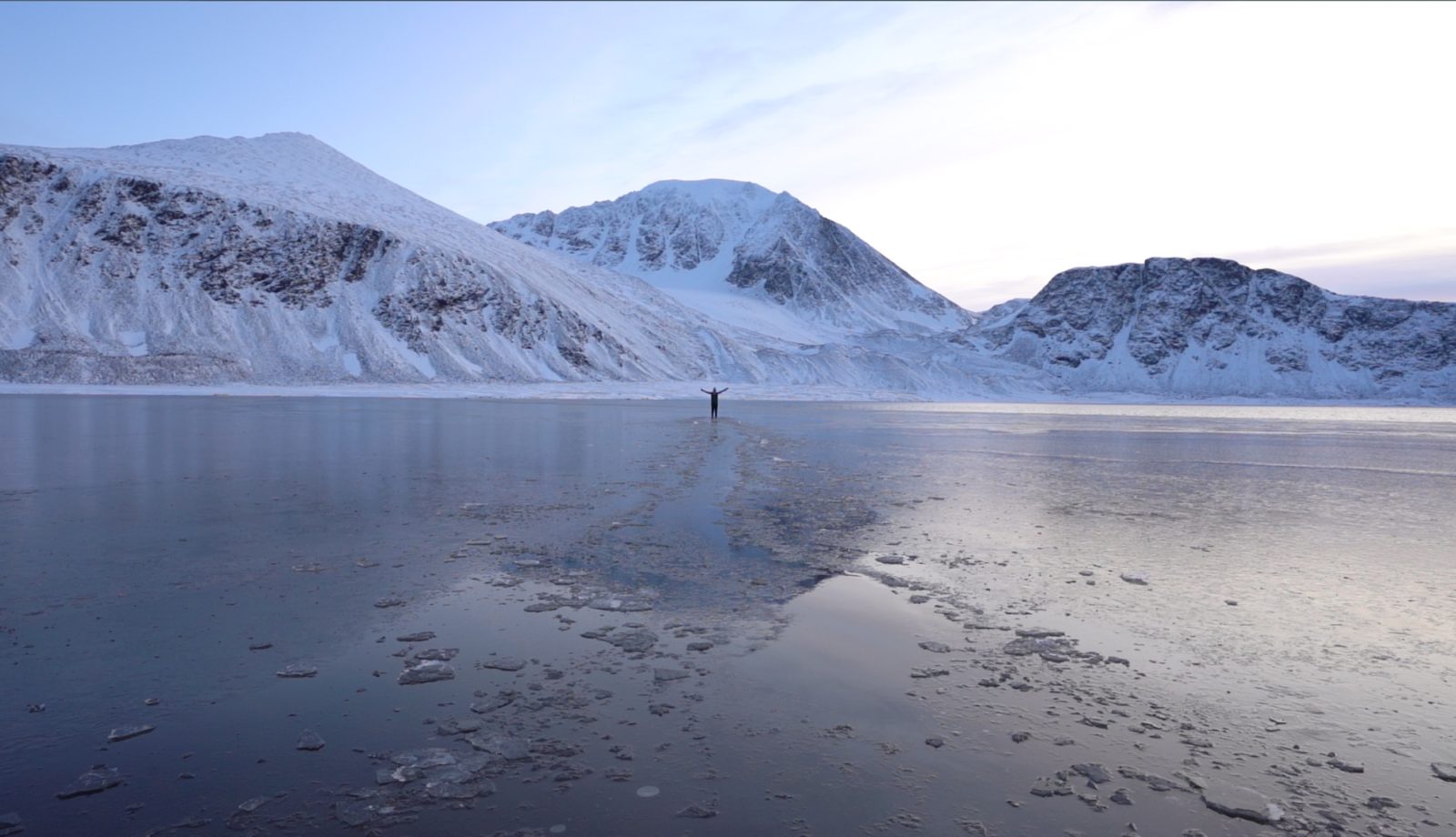 On shore, I paint landscapes with arctic mud and water, trace the contours of glaciers, carve words into frosted soil, and photograph the surroundings at micro and macro scales. Since a “landing” is only two to three hours at a time (to prevent frostbite!), creative time is brief. I become highly reactionary — no time to hold back or overthink a project. Any creations need to happen instantly, responding to a fleeting location. This is a liberating way to make art.