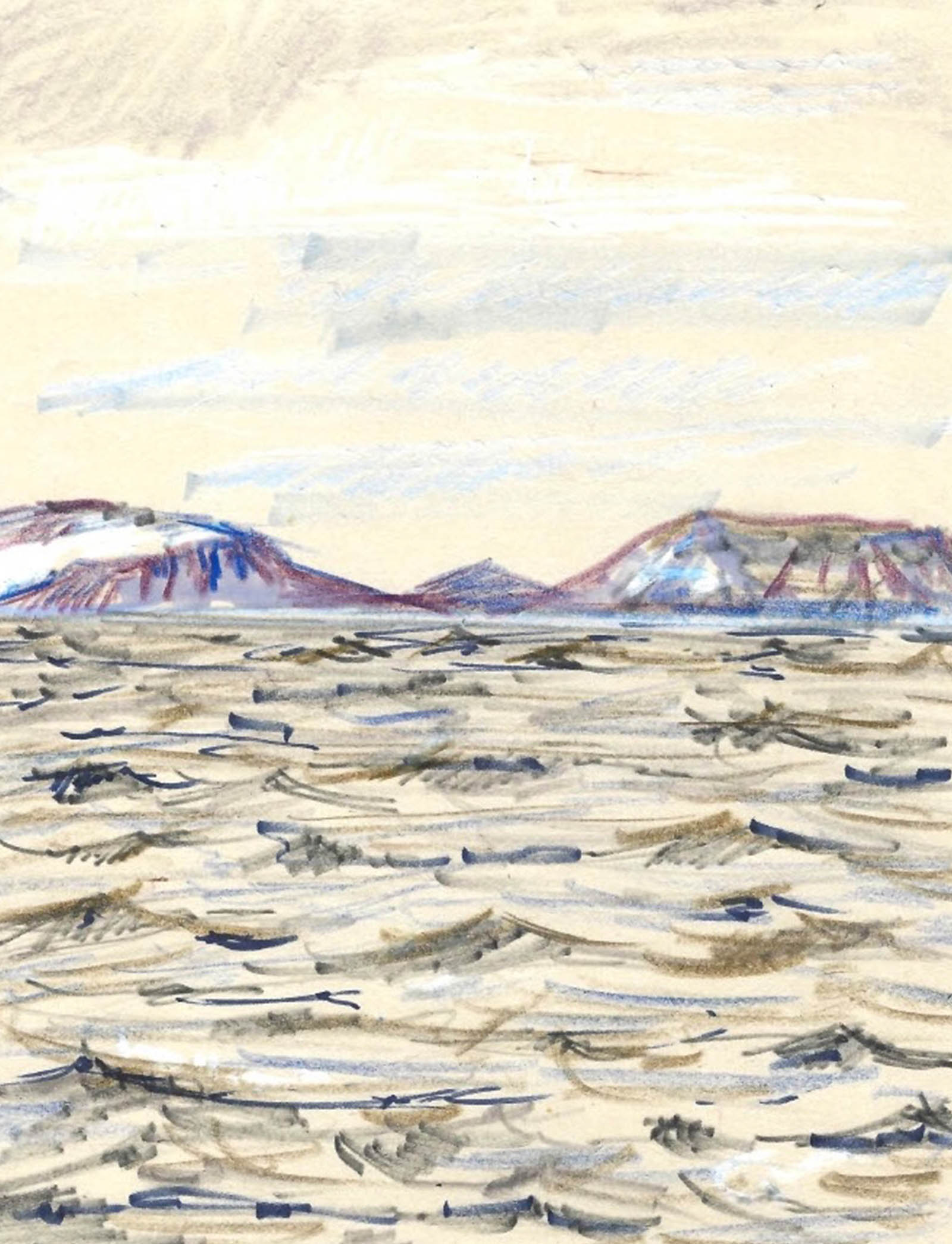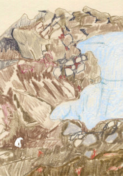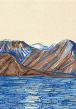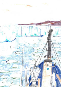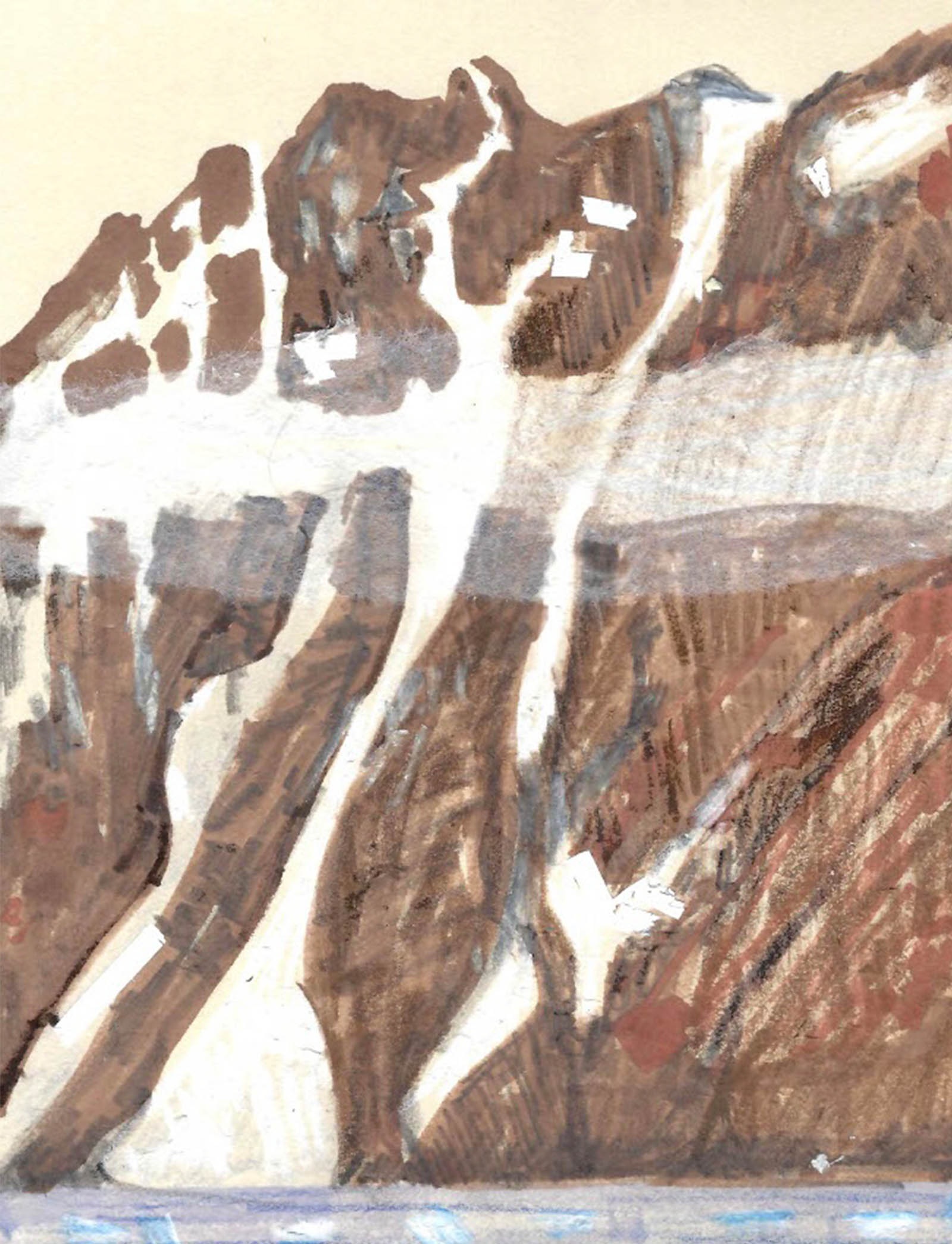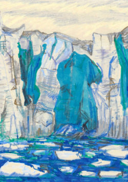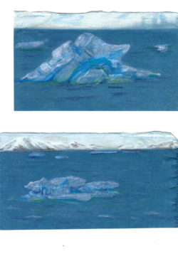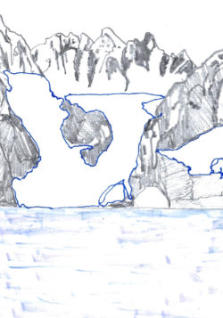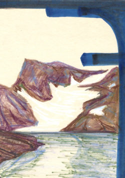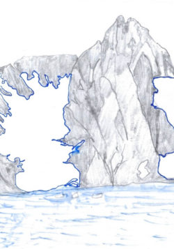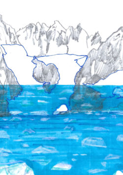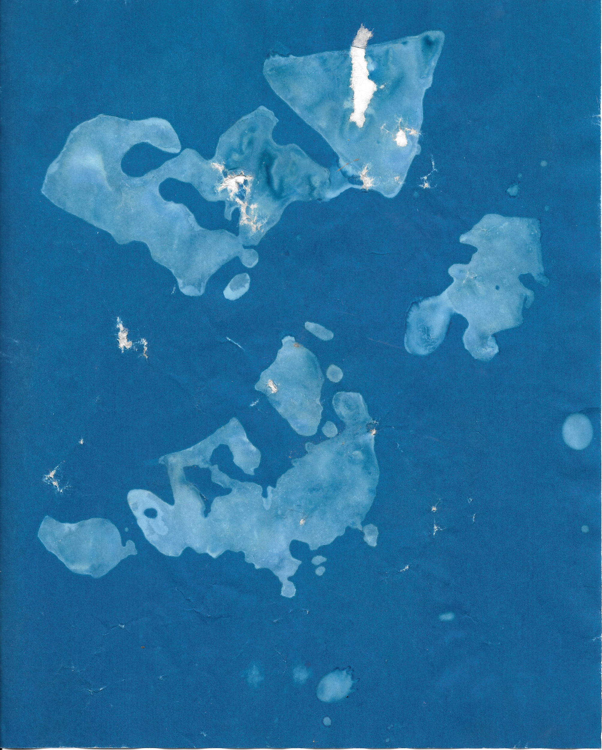 Arctic Origins is a field journal recording observations, artifacts and findings collected during an arctic voyage on the TallShip Antigua around the perimeter of Svalbard, Norway. This hand-bound book features a compilation of maps, cyanotypes made from glacial ice, and various sketches of sites and scenes from the voyage.