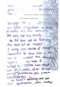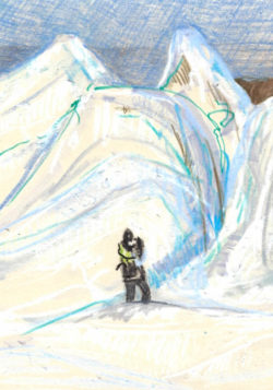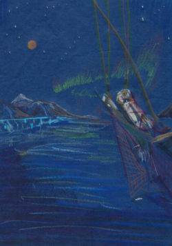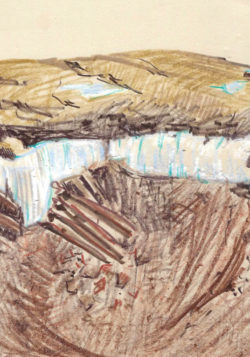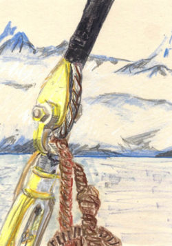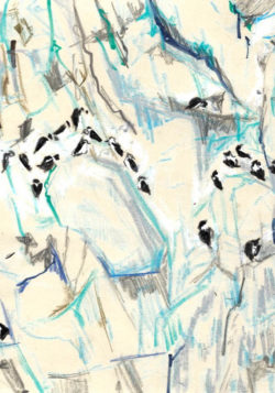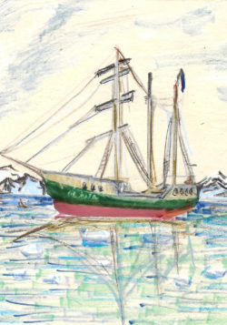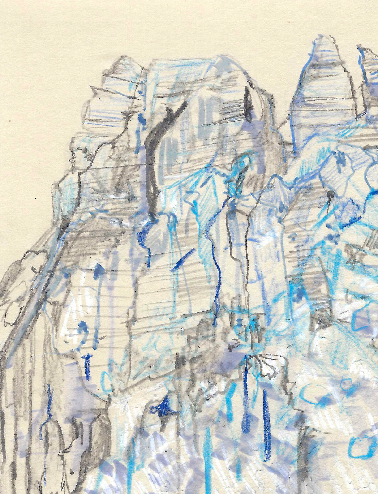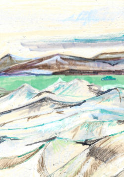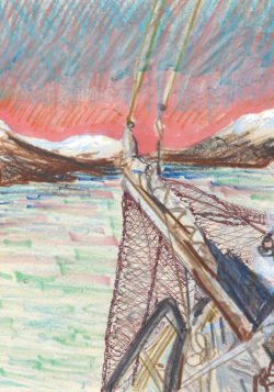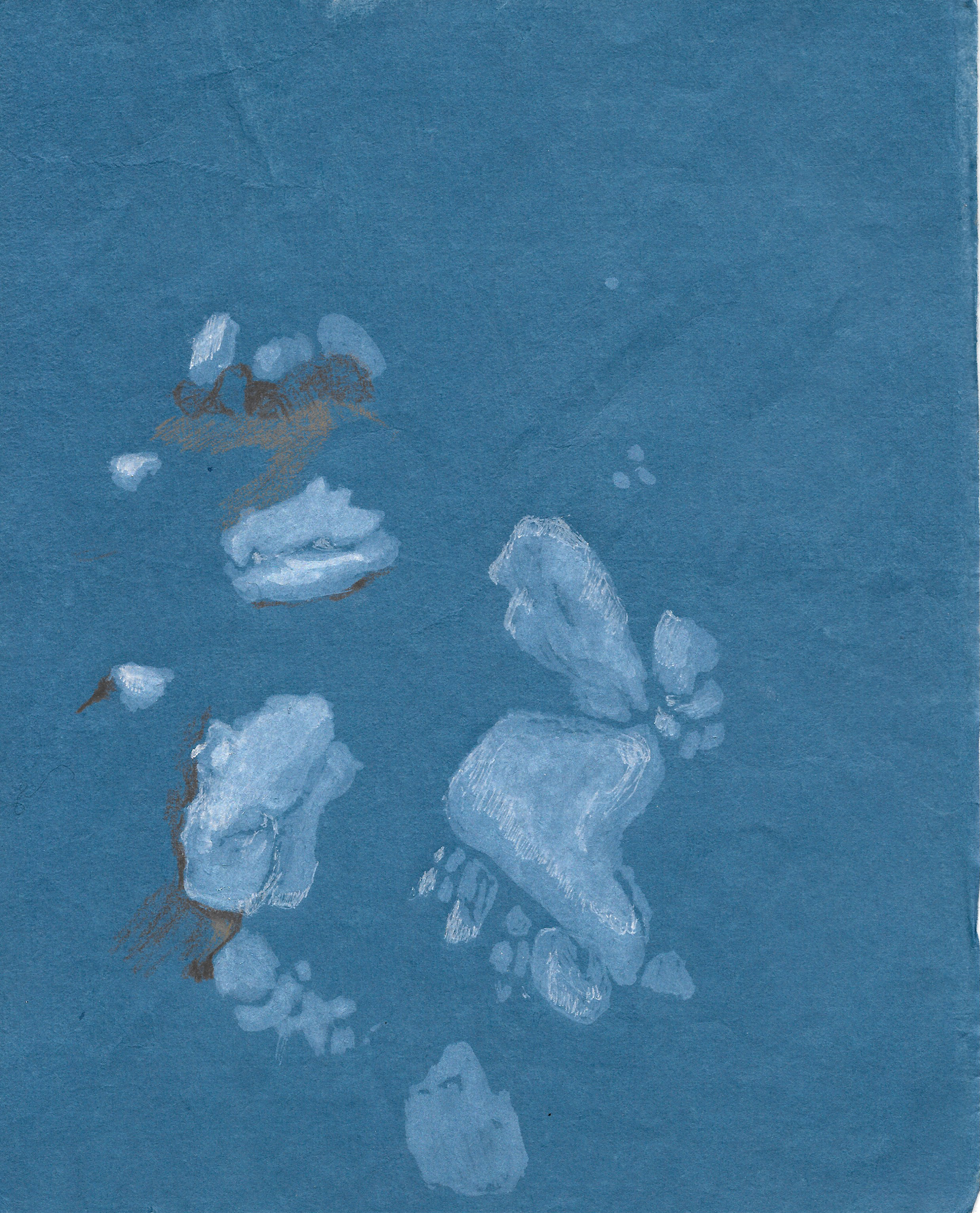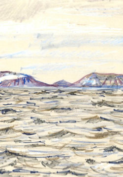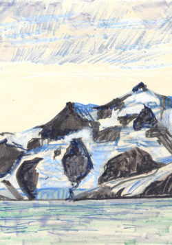 Arctic Origins is a field journal recording observations, artifacts and findings collected during an arctic voyage on the TallShip Antigua around the perimeter of Svalbard, Norway. This hand-bound book features a compilation of maps, cyanotypes made from glacial ice, and various sketches of sites and scenes from the voyage.