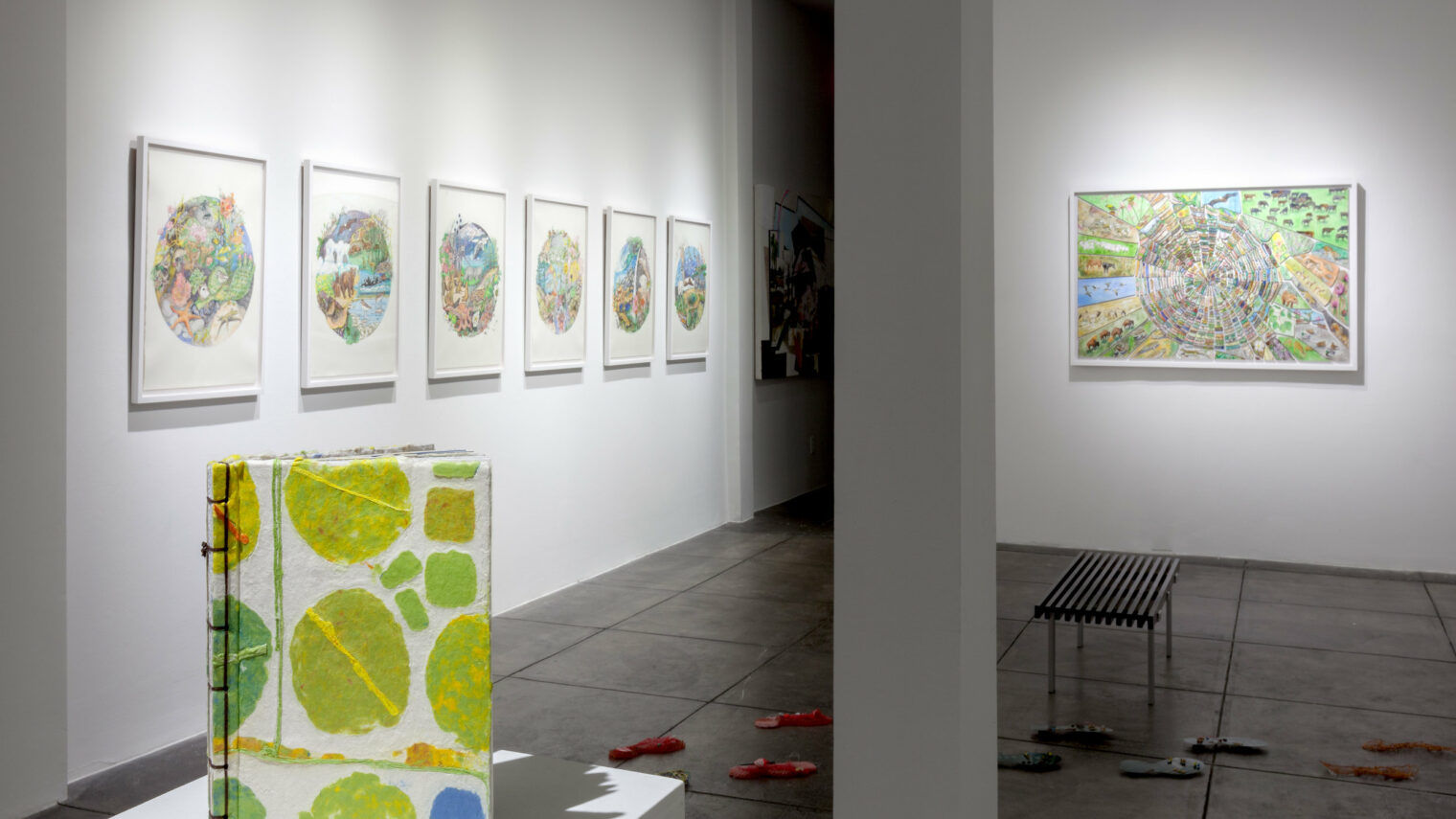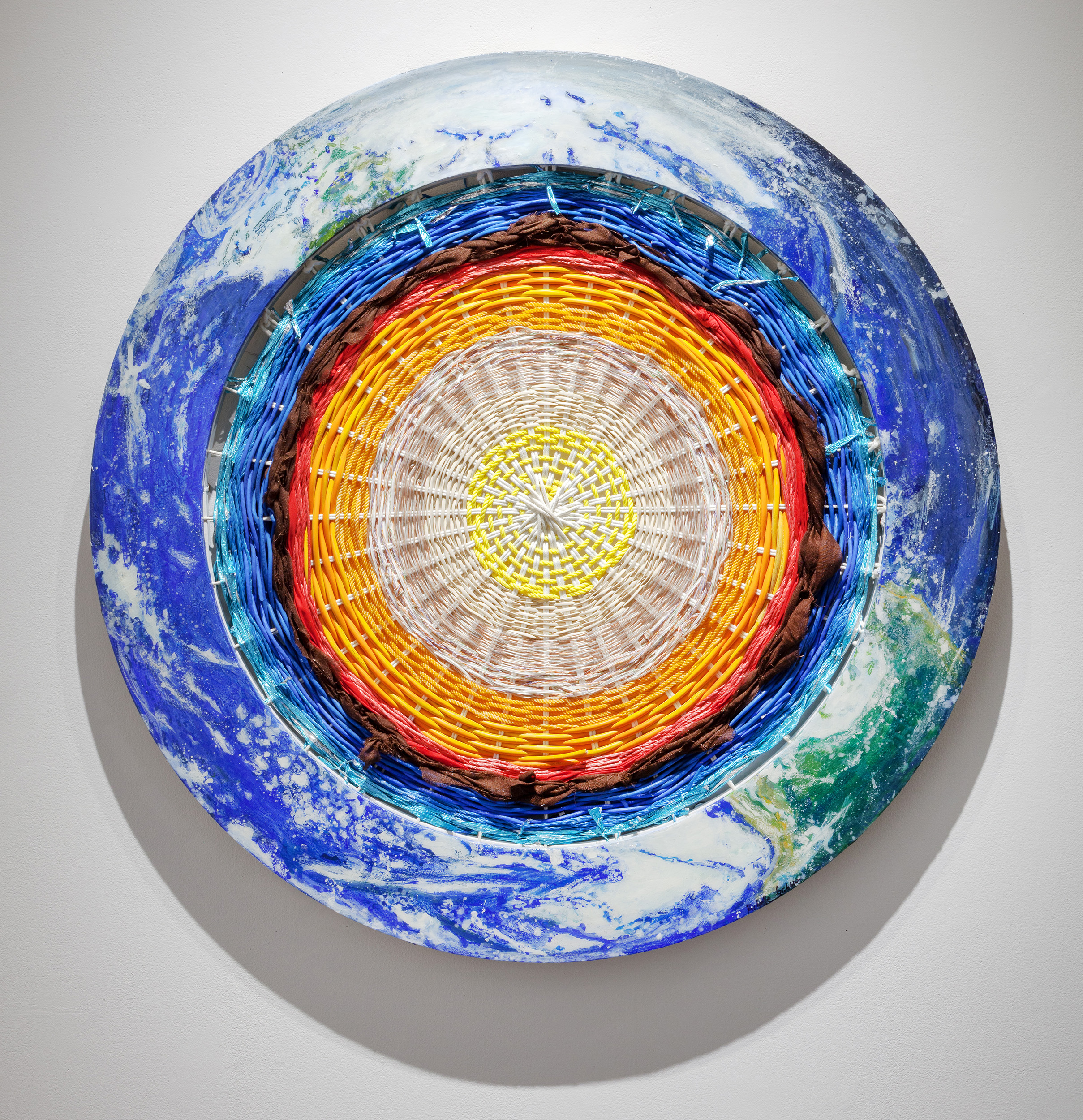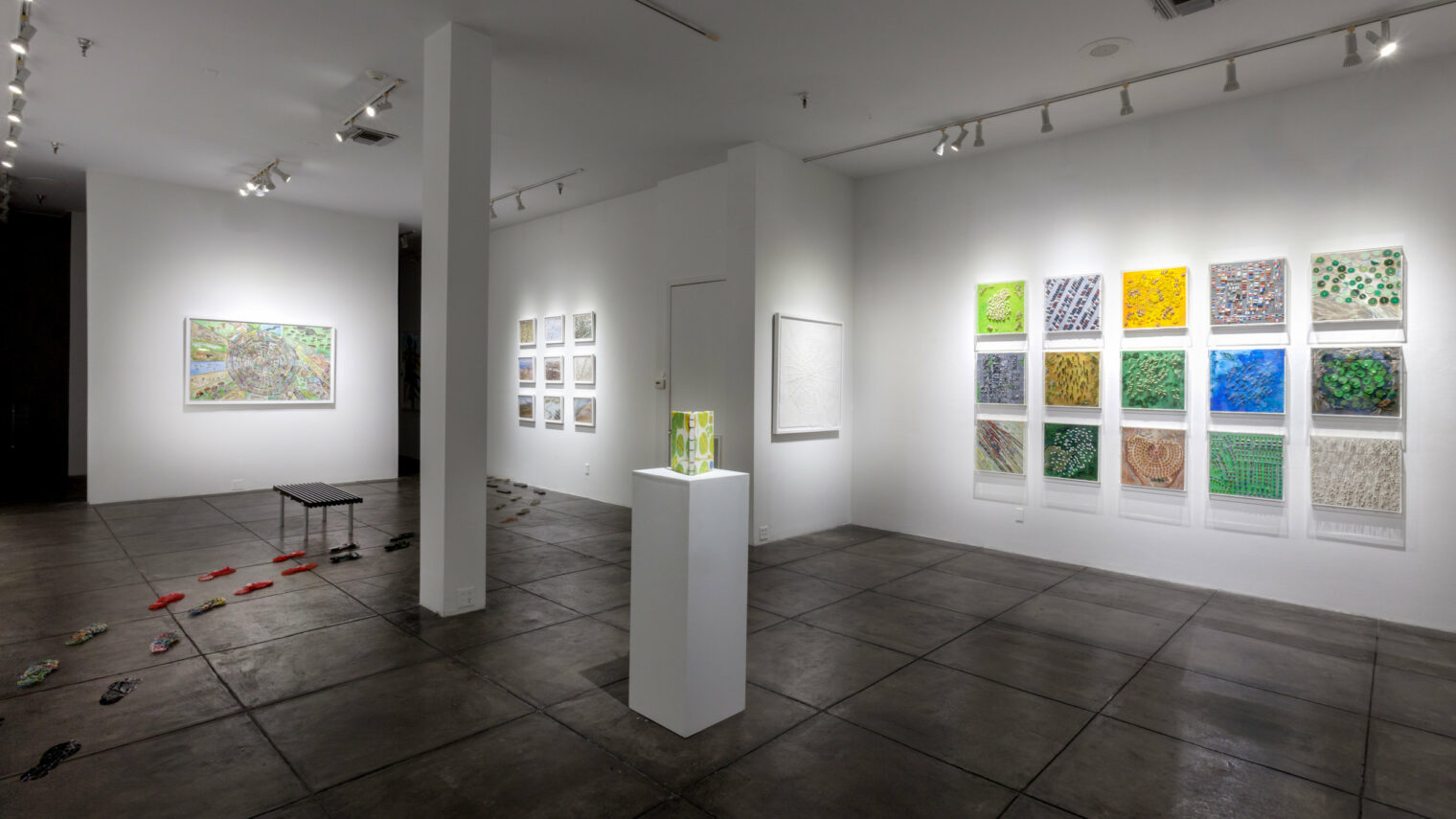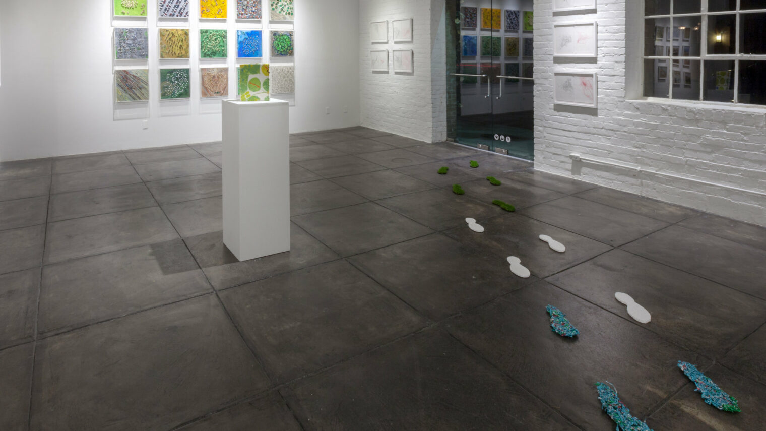 Humans are not separate from nature, but integrated and bound by it. Nature without humanity is examined in works Biosphere, Invisible Complexity, and Biodiversity, which marvel at the natural world living harmoniously as one connected and exquisite system. The natural world is innocent, void of human impact, and vibrant in color. These works depict how organisms and environments are alive and entangled. The field of Ecology is also explored in these works that link hundreds of species in unified webs and biospheres. Optimistic in scope, these works take the form of connective structures and circular compositions to suggest interconnectivity and natural unity.