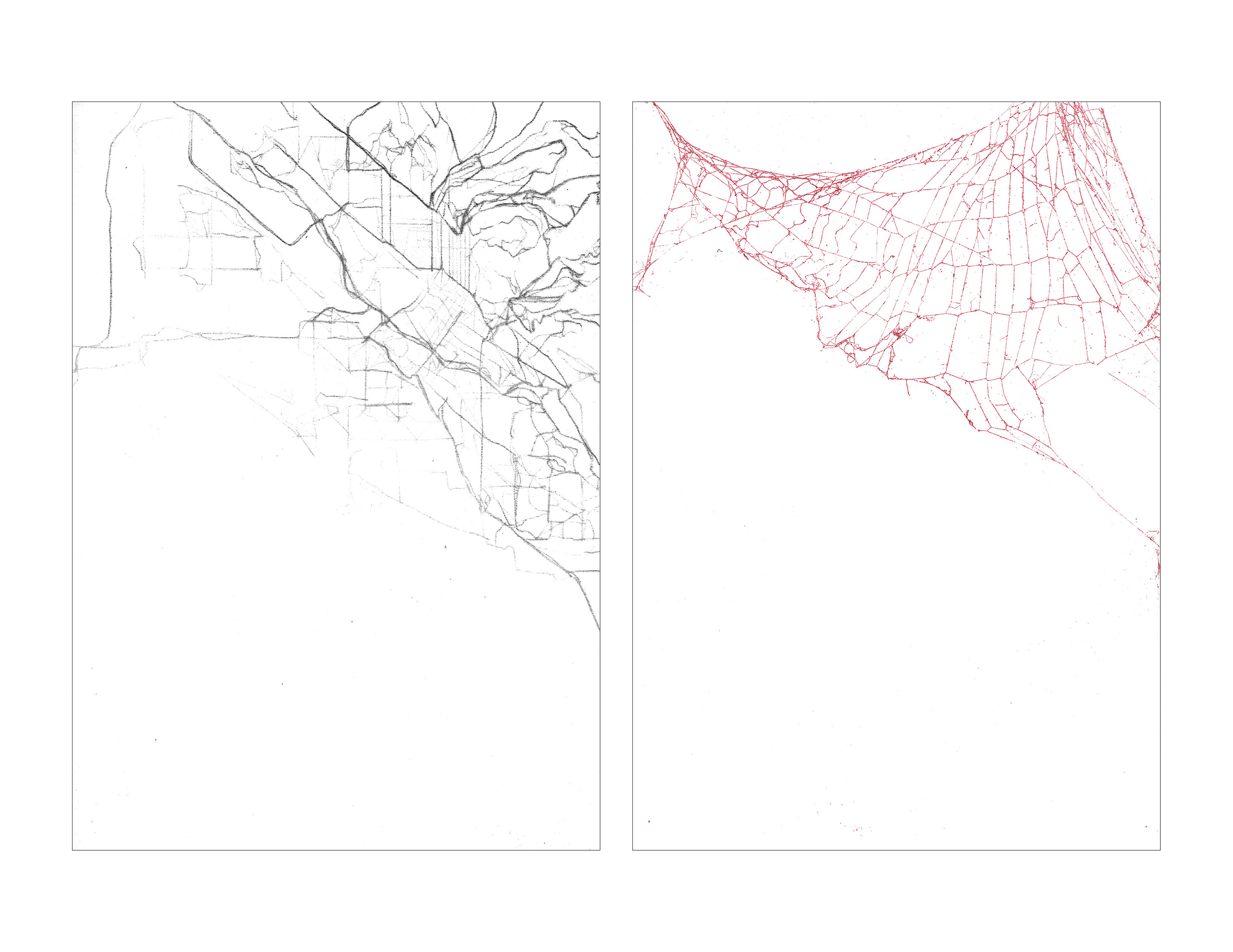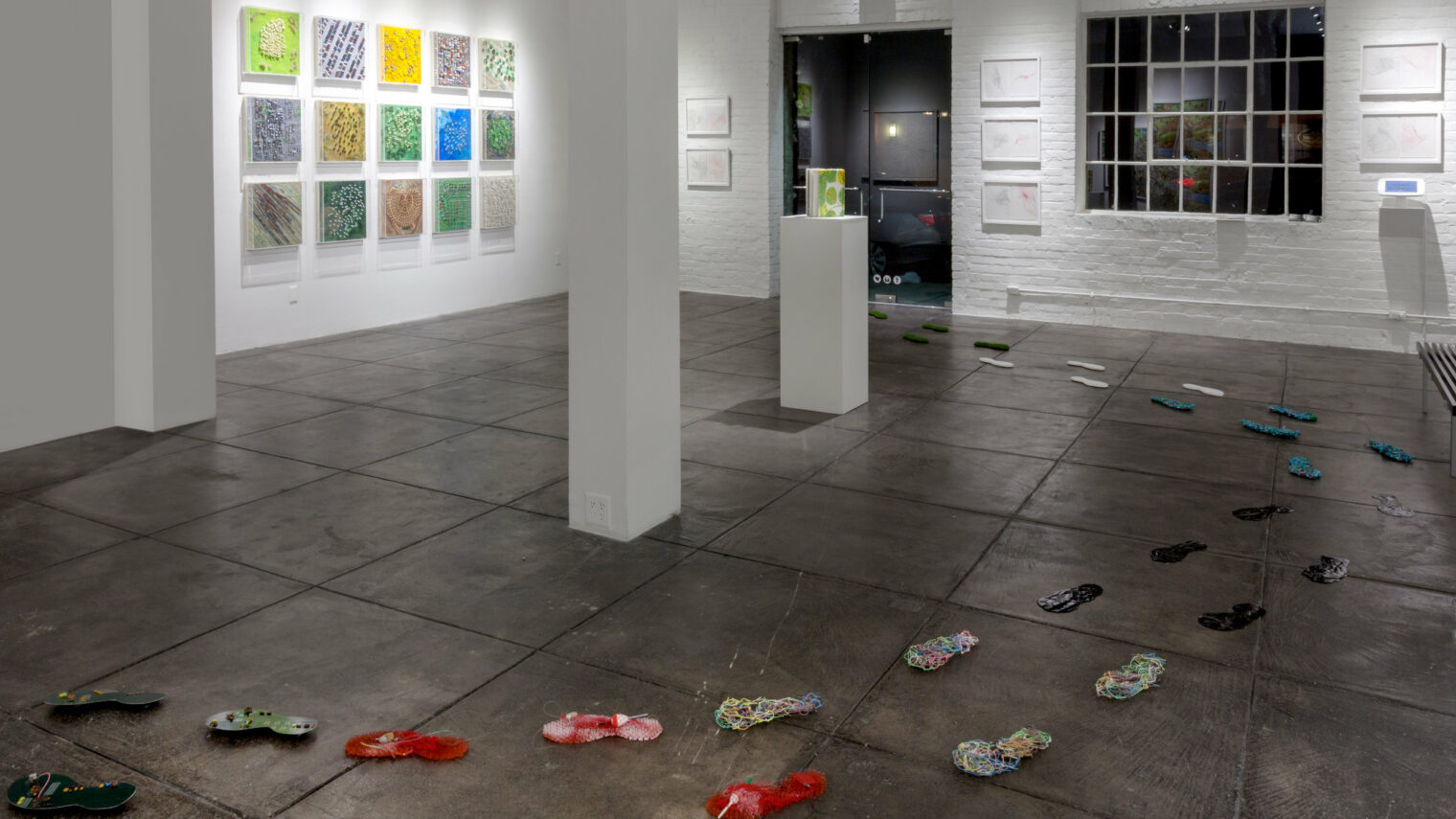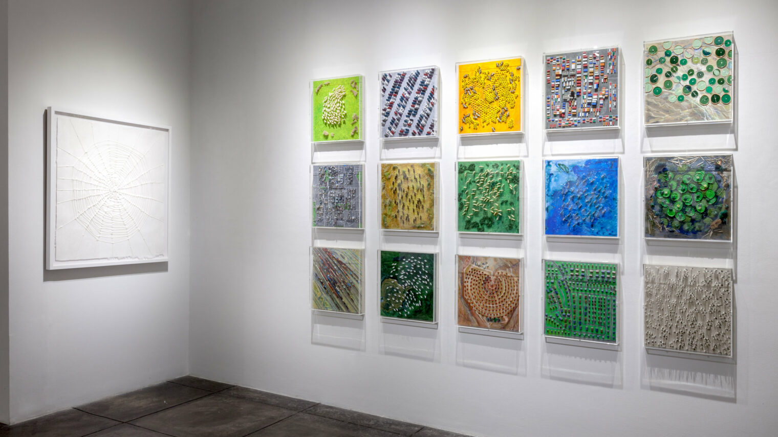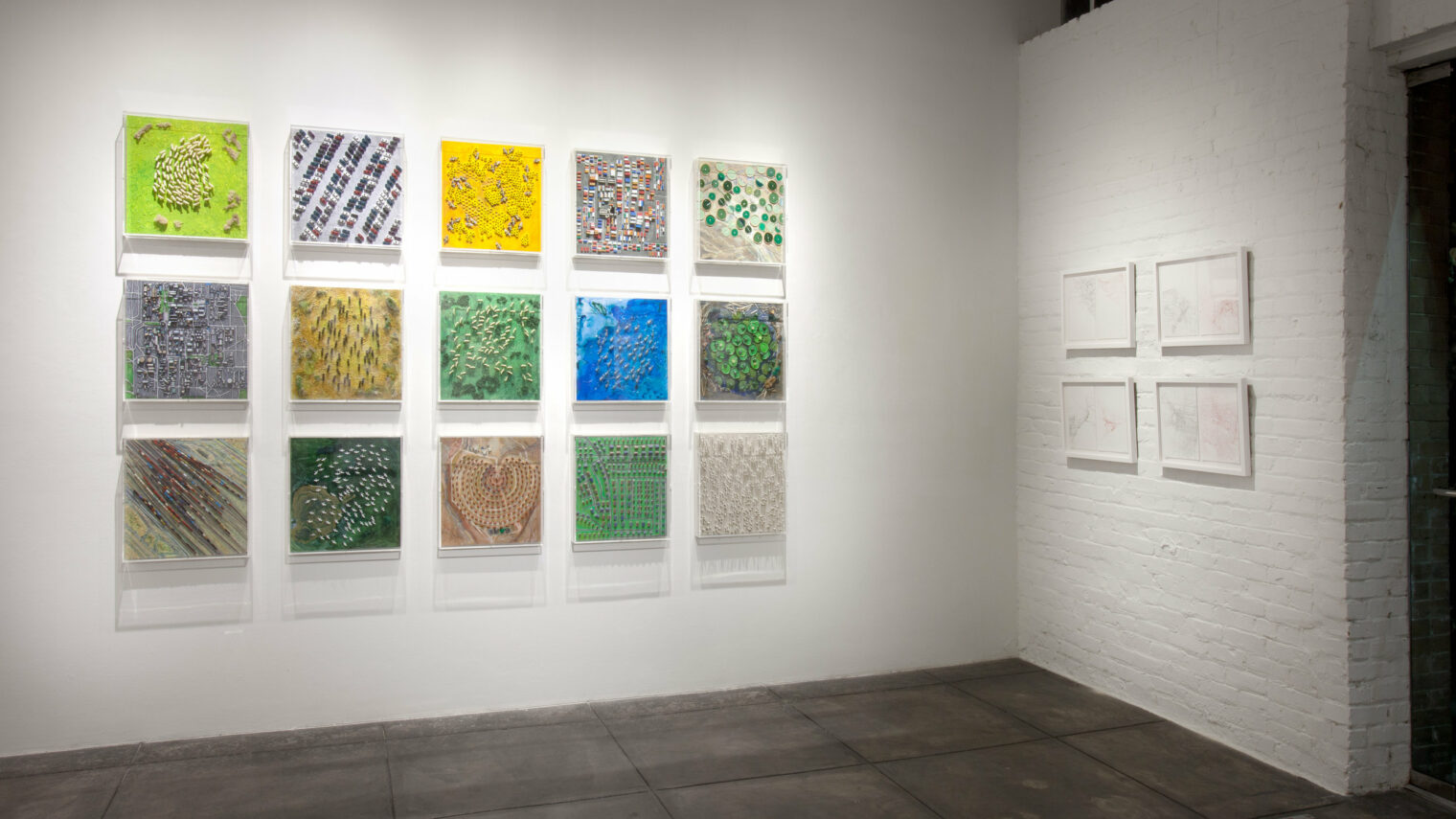 “Gribble‘s art is restless, moving from dioramas painstakingly assembled from found materials, to a sprawling network of miniature painted snapshots, to filaments of spider silk arranged to echo urban streetscapes. Despite the diversity of media, her work maintains a continuity of theme, a sense of place, and a reverence for our home planet.”