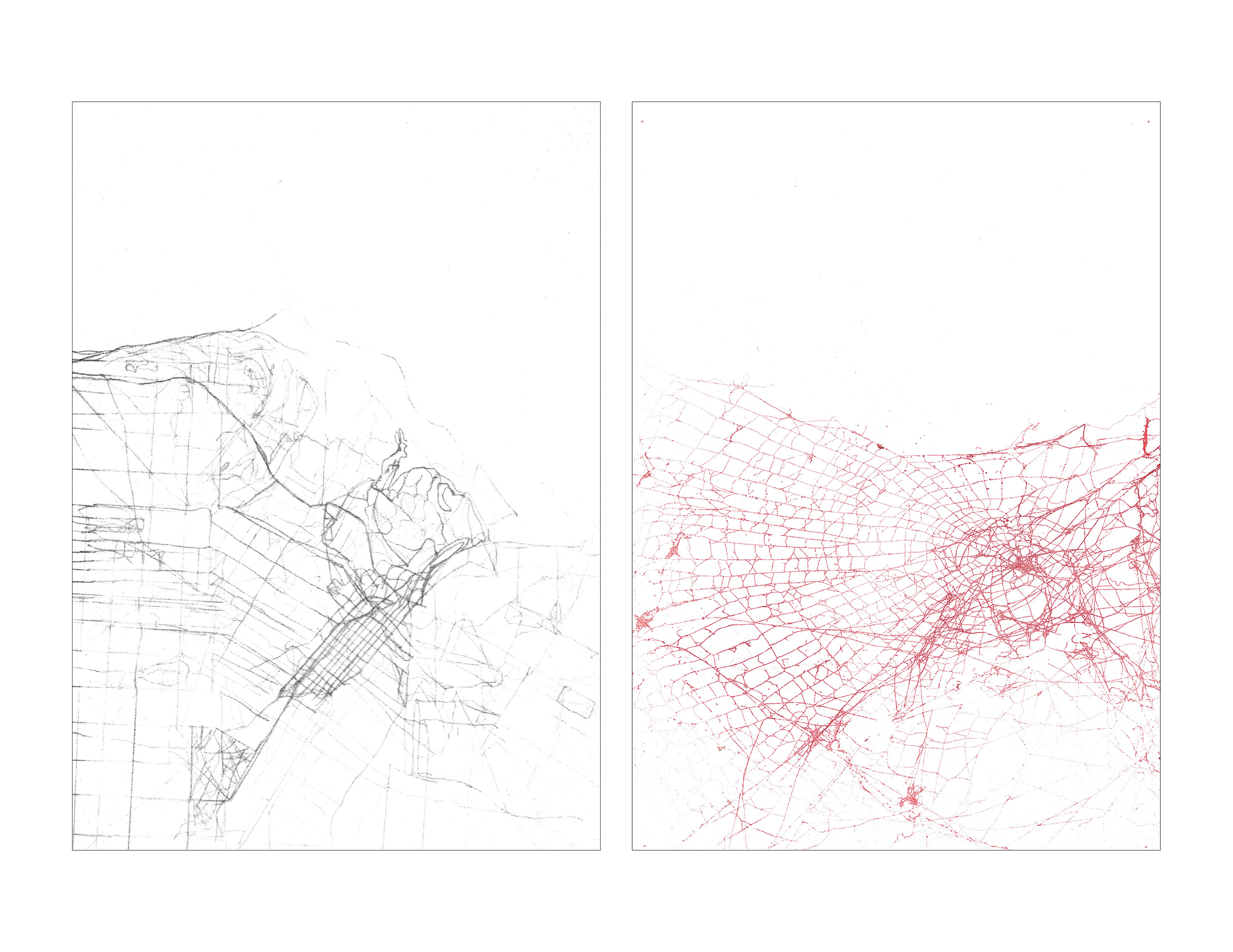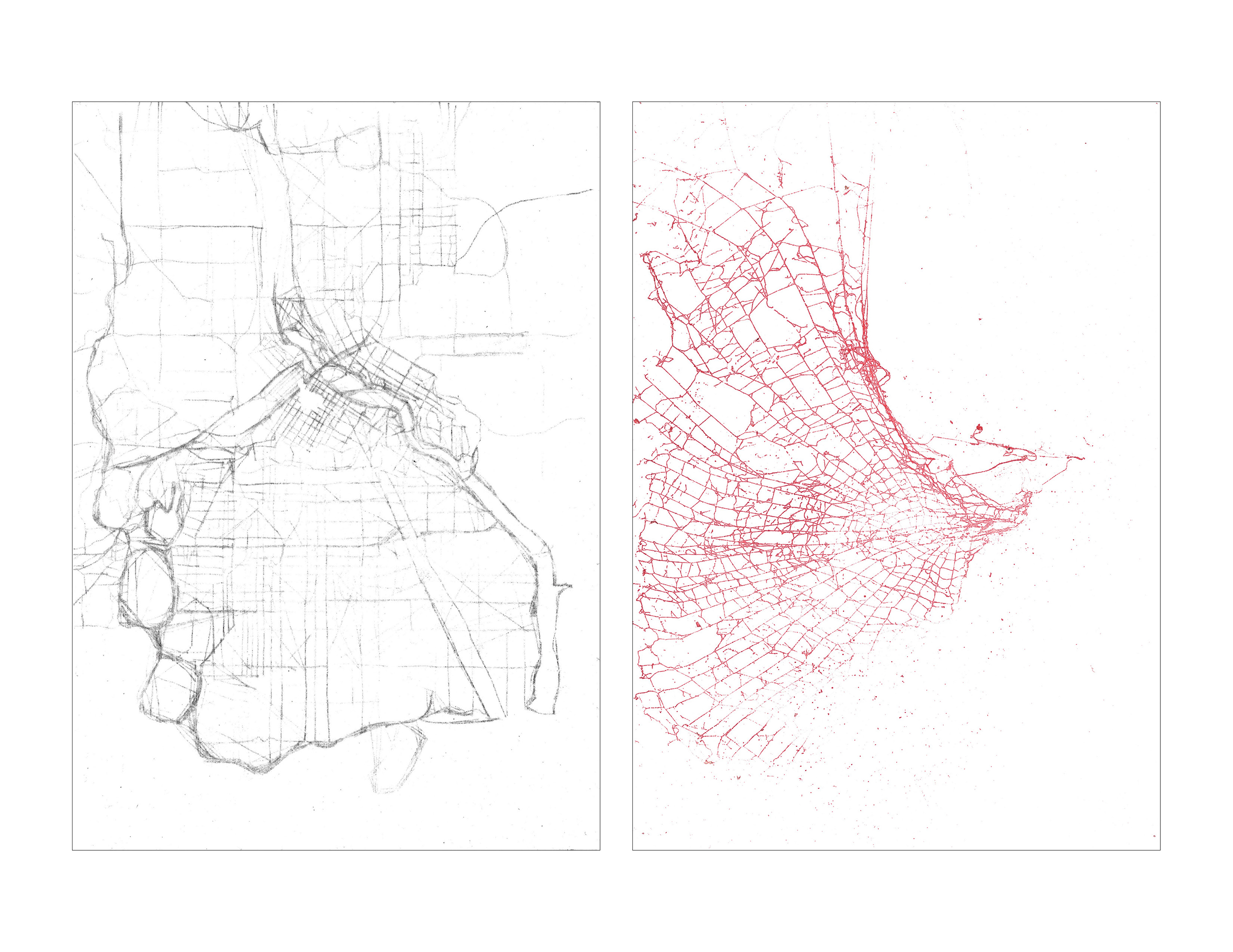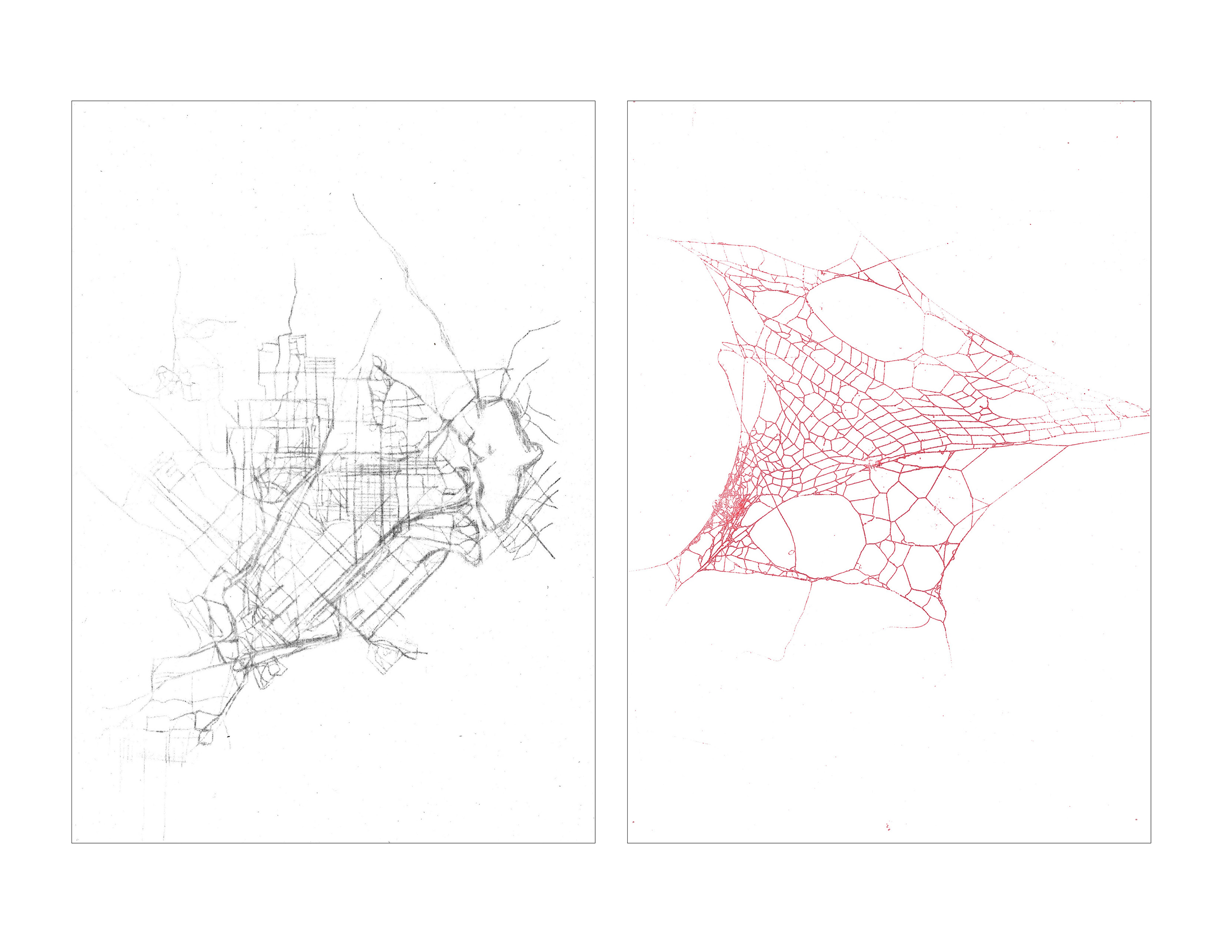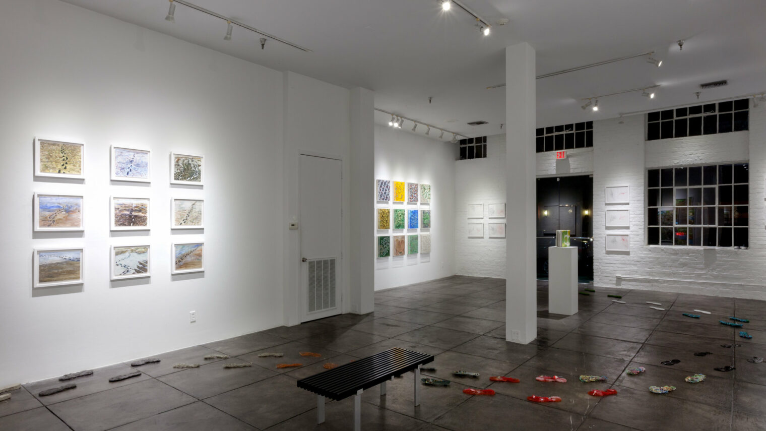 “Gribble‘s art is restless, moving from dioramas painstakingly assembled from found materials, to a sprawling network of miniature painted snapshots, to filaments of spider silk arranged to echo urban streetscapes. Despite the diversity of media, her work maintains a continuity of theme, a sense of place, and a reverence for our home planet.”