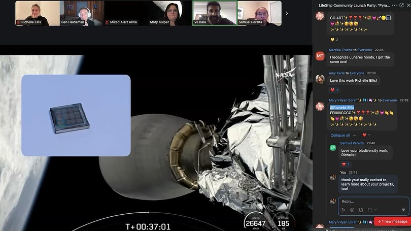 Biospheres & Trees of Life represents the profound interconnectedness of life on Earth and humanity’s boundless aspirations. Through the imagery of trees and biospheres—symbolic of the intricate ecosystems that sustain life—juxtaposed with the vastness of the lunar landscape, the work creates a bridge between the terrestrial and the celestial. Artwork etched onto nickel-based Nanofiche, the world’s densest analog storage, aboard a lunar lander bound for the Moon.