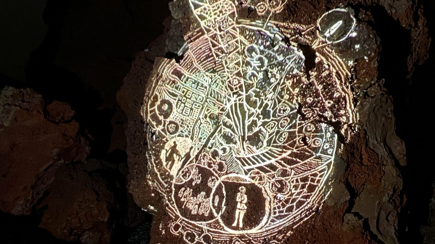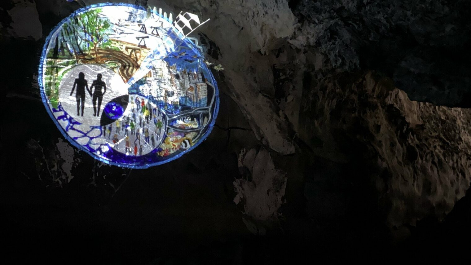 I created several new artworks projected onto cave walls within deep lava tubes in the Martian terrain. Images referenced migration, the Overview Effect, global networks, biodiversity, and extension beyond Earth. Similar to Plato’s Cave, I photographed the shadows we cast on the cave walls, asking how do these shadows illuminate aspects of our identity, our reality?