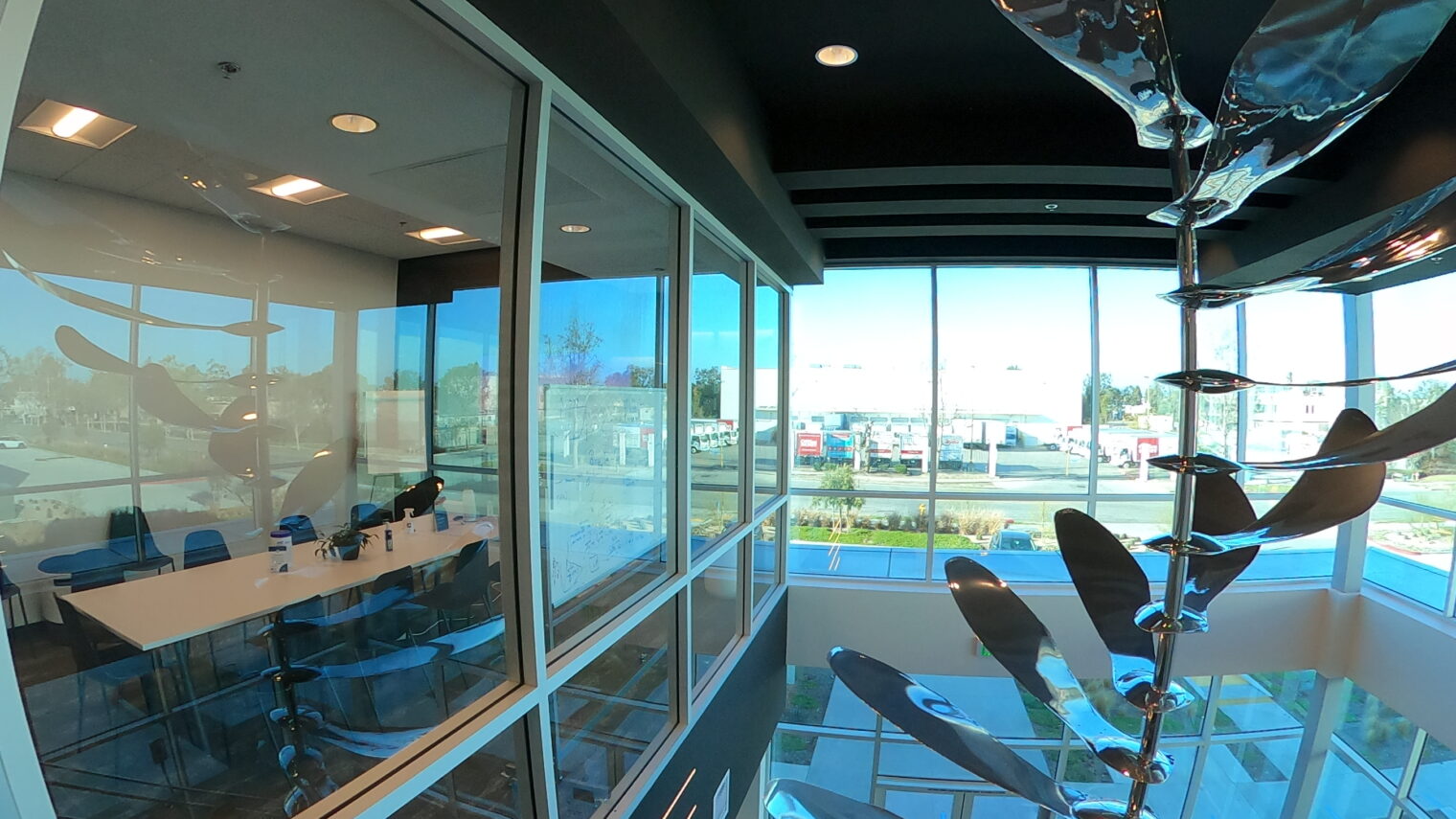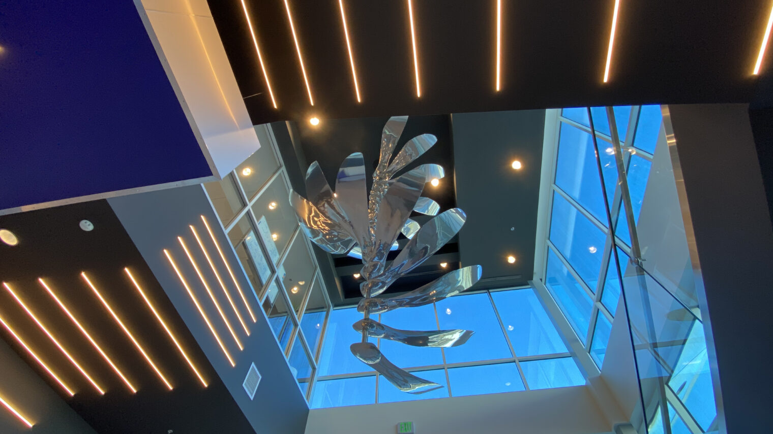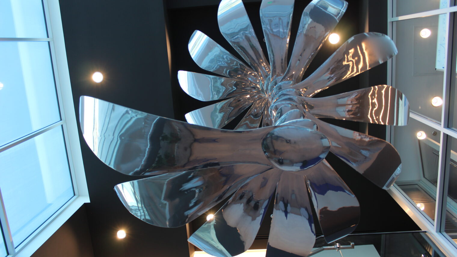Inspired by the evolution of aeronautics in nature, Spiral Dynamics: Flight of the Maple Seed mimics the captivating spiral flight path of a falling winged seed. This large-scale kinetic steel sculpture is based on the shape and design of a real maple seed. Each seed wing reflects the spiral pattern that emerges when a seed takes flight, referencing biomimicry used in early aviation. This large-scale kinetic sculpture was co-created with the Beyond Earth artist collective.