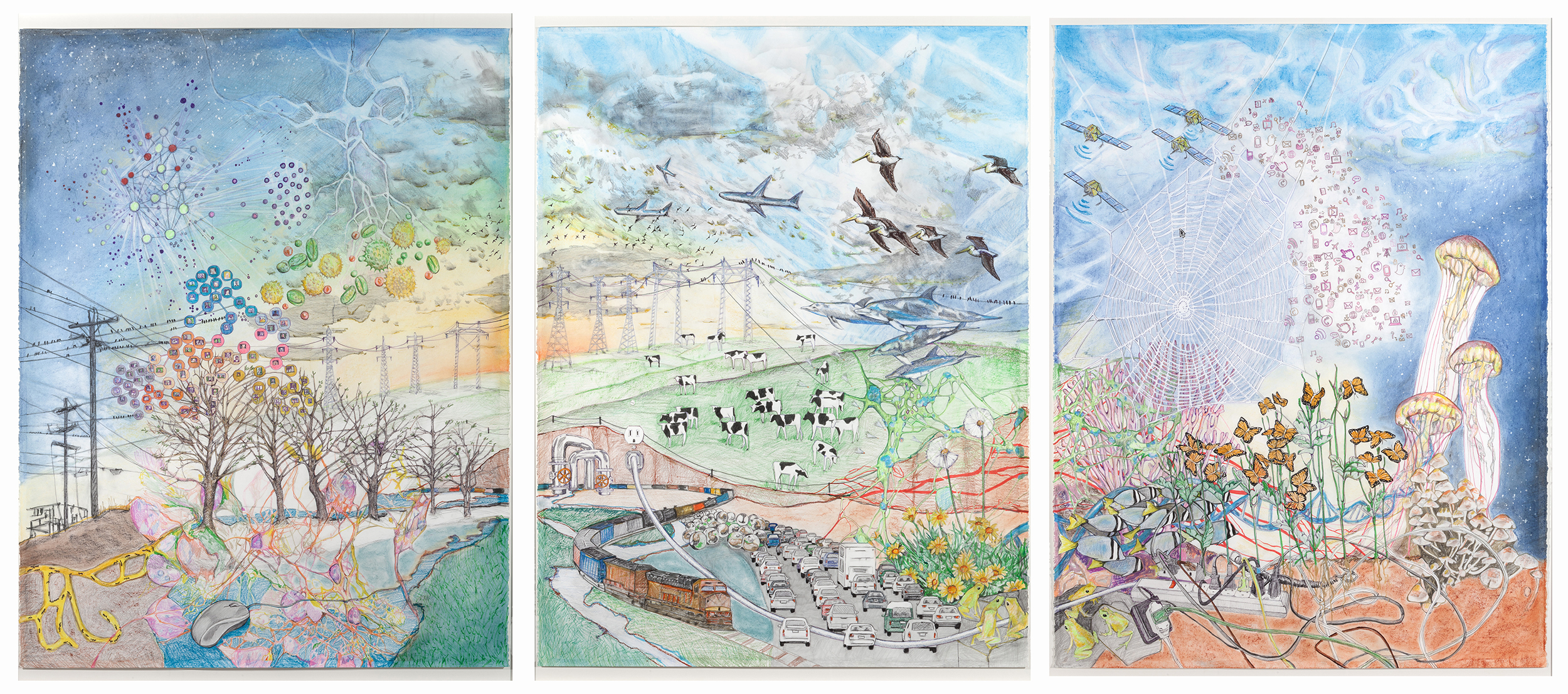 There is an invisible, geometric lace that drapes over our planet, linking organisms, social systems, and ecosystems together. Each thread serves as a bridge to move resources and information, enabling survival and sustainability of all parts of the whole. By recognizing patterns that occur across interdisciplinary systems, we can predict and preserve the outcome of imbalanced or disrupted systems. Providing big-picture perspectives creates opportunities for compassion, empathy, and unity to spread, through which positive social contagion guides movements and change. This network of systems is our ever-evolving Web of Life.
