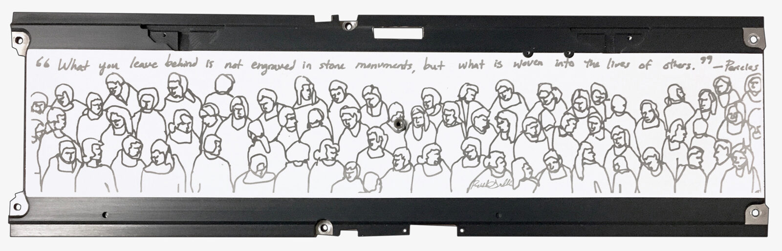 Planet Labs designs and manufactures CubeSat satellites called Doves that are then delivered into orbit as secondary payloads on other rocket launch missions. Each Dove is equipped with a high-powered telescope and camera programmed to capture different swaths of Earth. Each satellite has an artistic message etched on the side panels of the CubeSat, bringing a visual message to space.