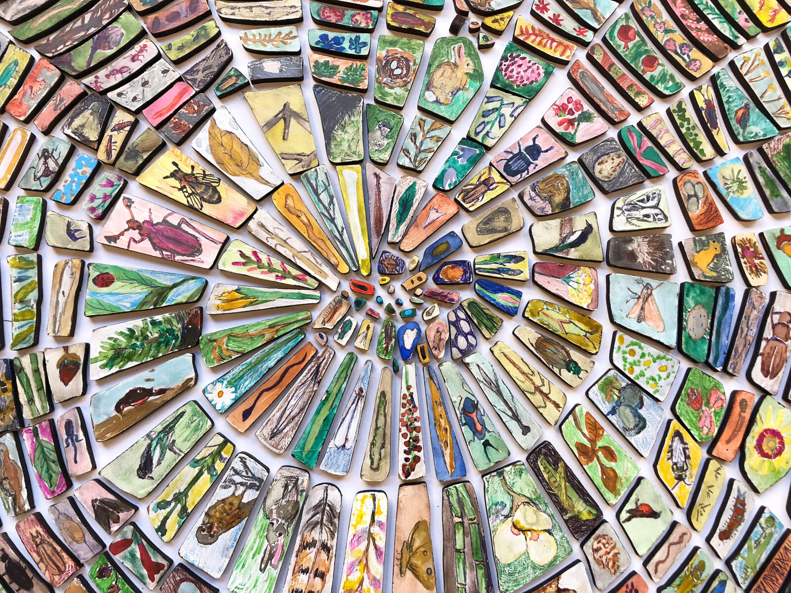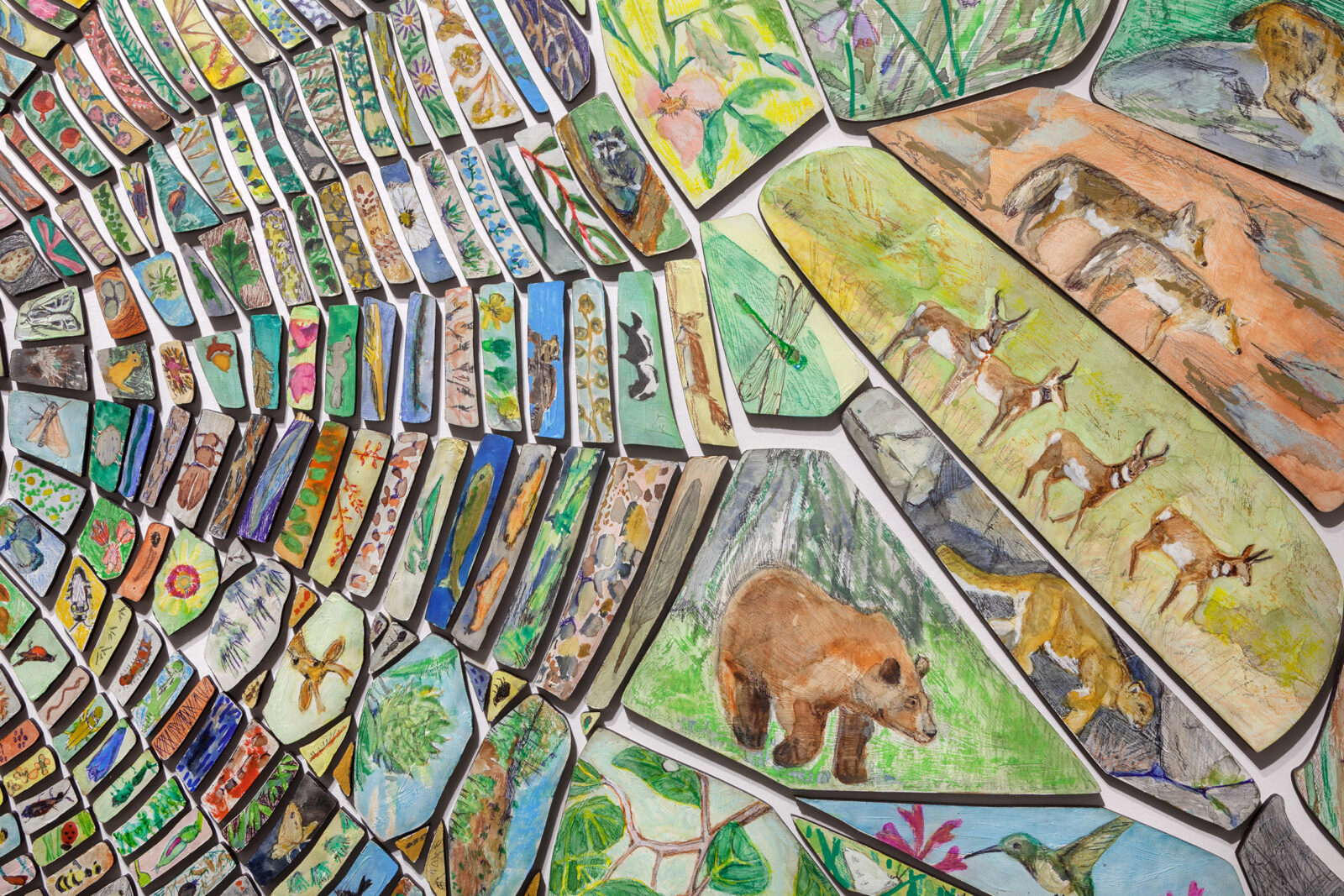 Biodiversity is comprised of hundreds of miniature paintings of inhabitants of the American West all bound together in an intricate web of life. Each animal and planet depicted plays an important role in maintaining balance and health within this ecosystem, where each organism represents a single strand in a complex web of relationships.