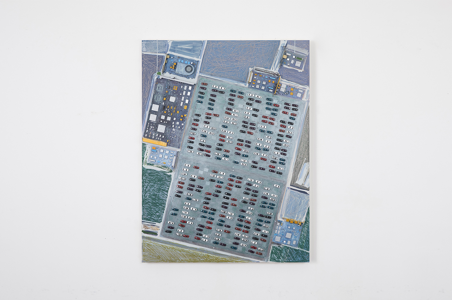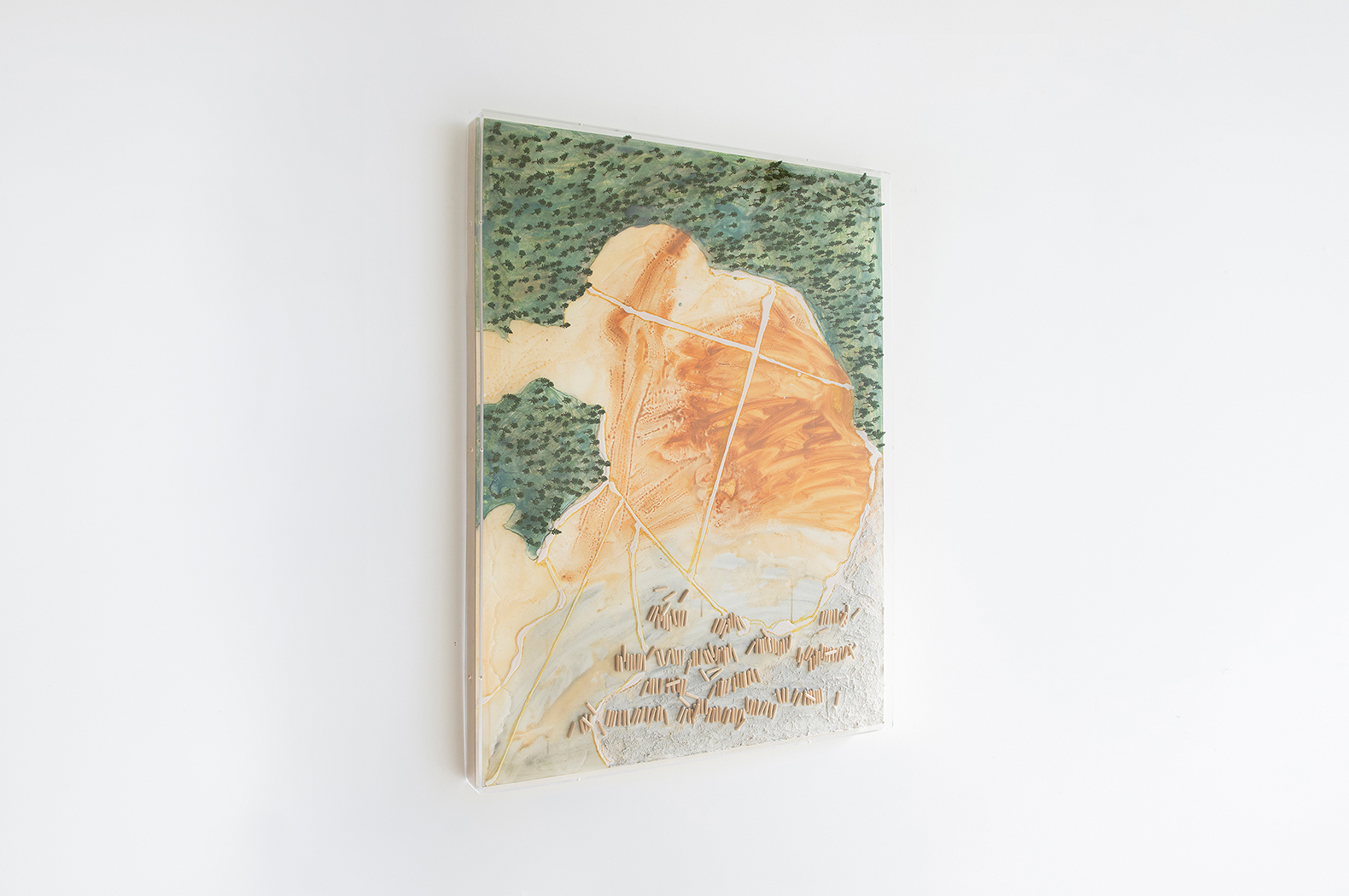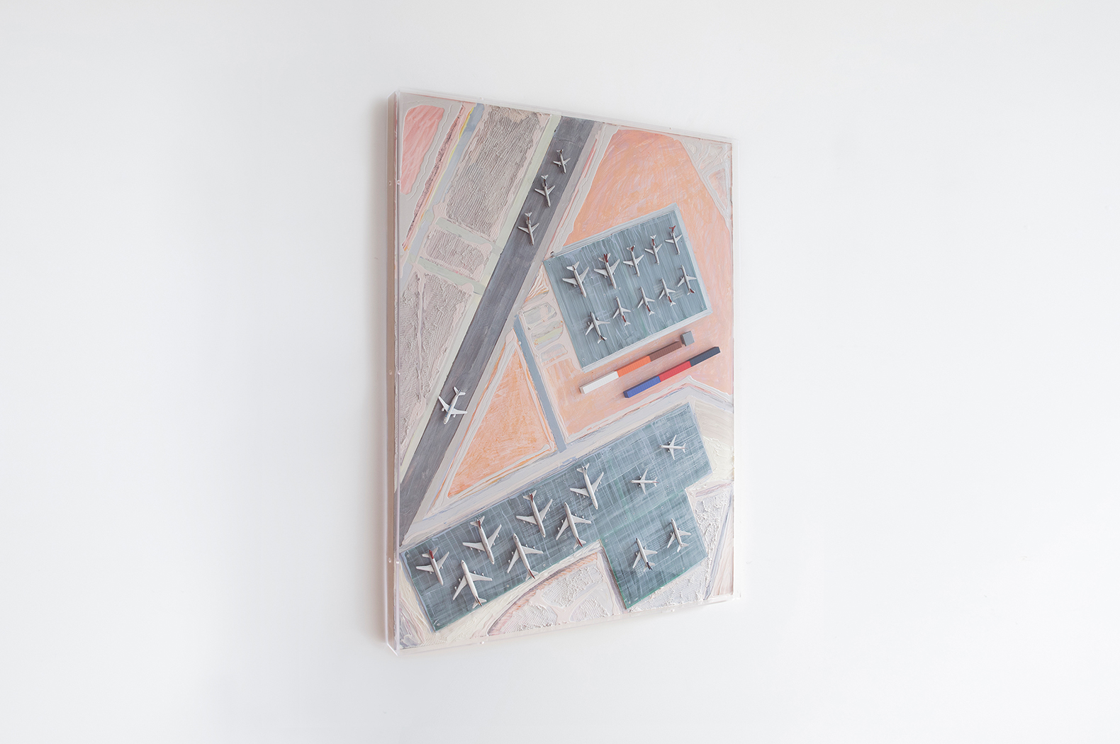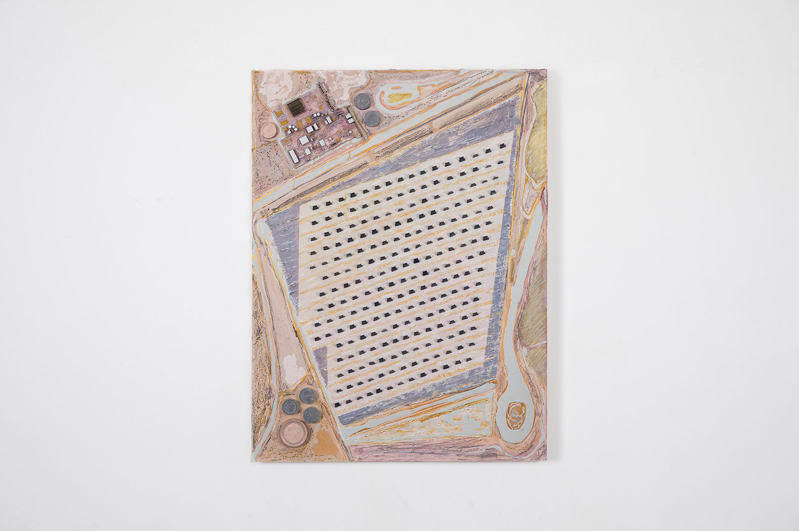 Earth Gaze is a series of mixed media paintings of urban and rural environments as seen from an aerial view perspective. Works are assembled with found objects, recycled materials, organic matter and circuit boards integrated into intricate and tactile scenes. It combines familiar landscapes with unexpected materials, shifting our gaze to see the world in new ways. The process of “earth gazing” is described by astronauts and airline passengers alike, as a meditative and deeply reflective experience, marveling at the complexities and beauty of Earth below.