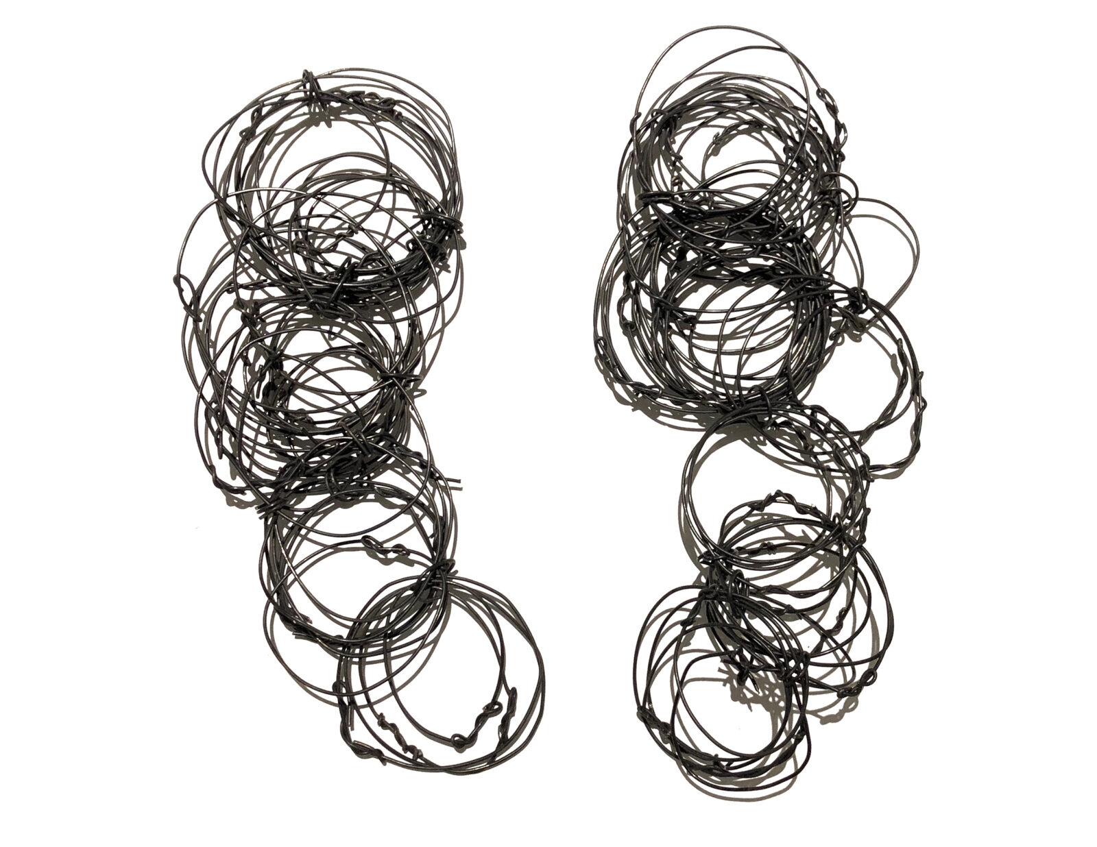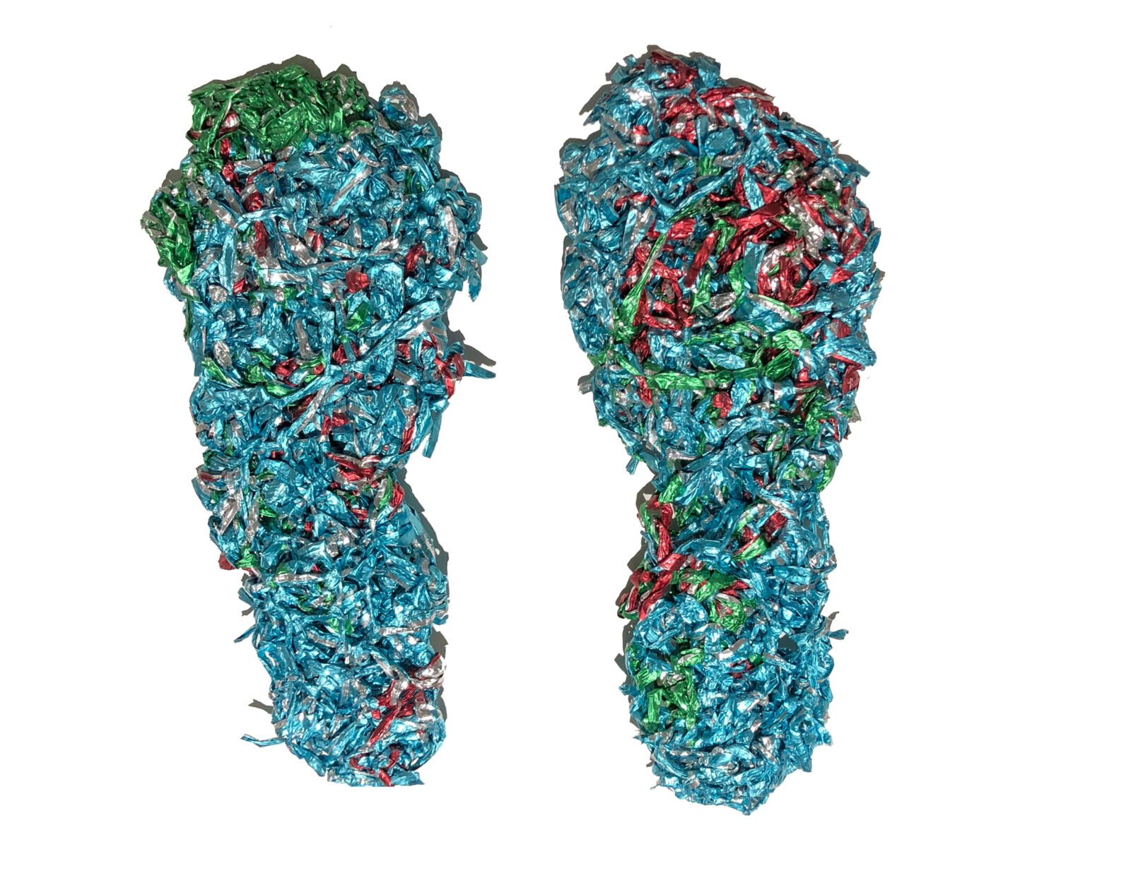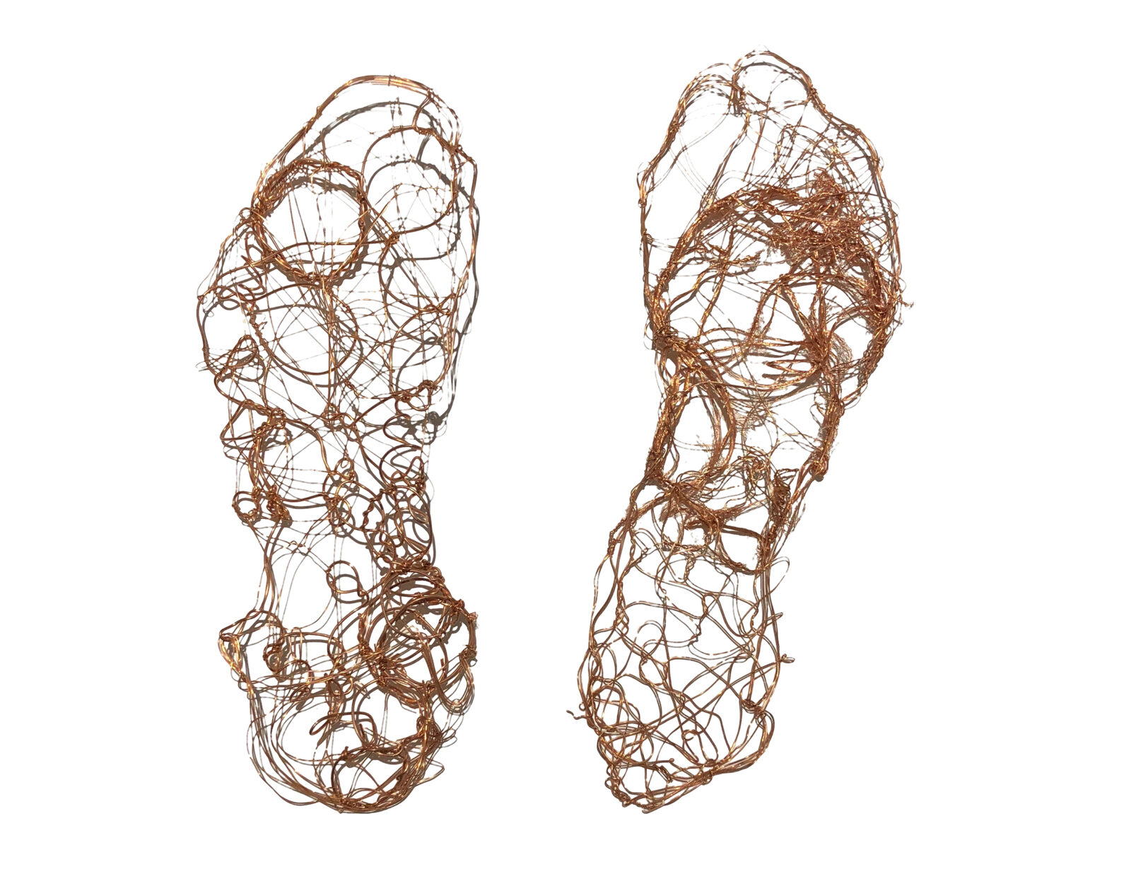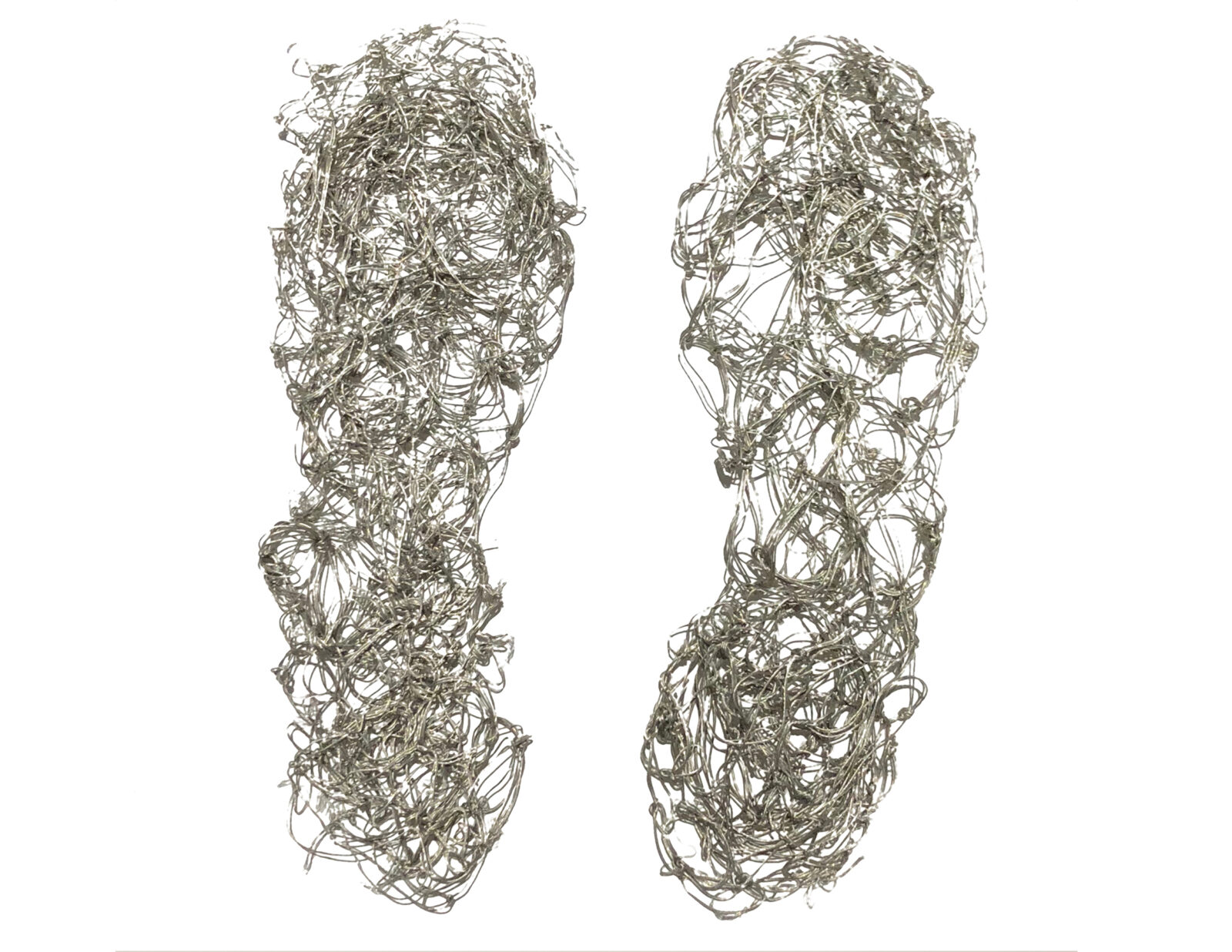 Eco Footprints references our human impact on Earth. Each footprint represents a different form or material needed for of extraction to accelerate human progress and industry. Such materials include metals extracted from the Earth to fabricated, chemical based materials that affect the very foundation of Earth’s surface.