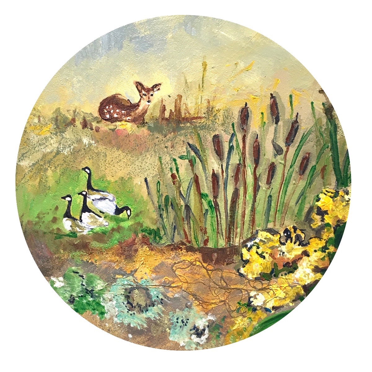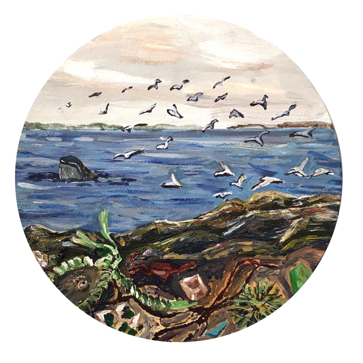 Ecosystems is a series of paintings of various landscapes, objects, and wildlife witnessed in Eastport, ME. Intersecting string connects each painting to one another implying how all ecosystems are inextricably linked.