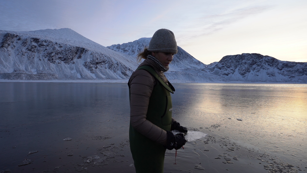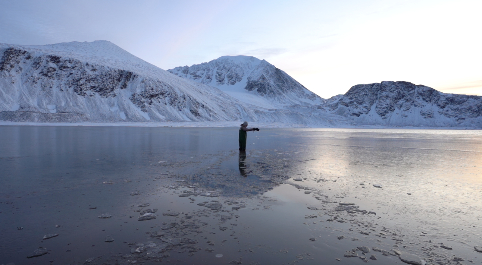 Ice Clearings is a performance-based video capturing the disruptive nature of humanity within arctic environments. Through movement, interaction, and endurance-based practice, the artist removes large blocks of ice from the natural environment to show the ways humanity causes the disappearance of ice near the North Pole.