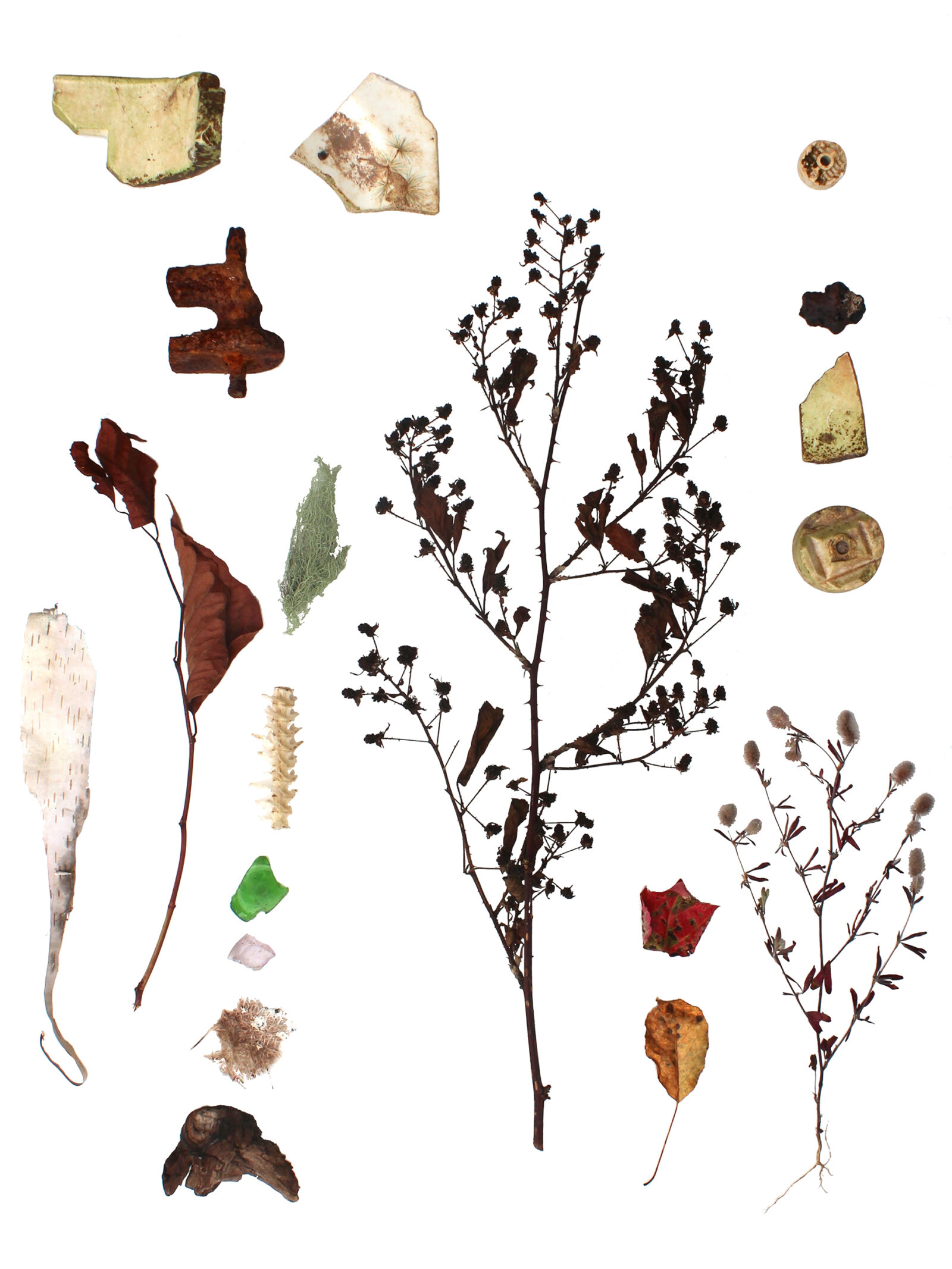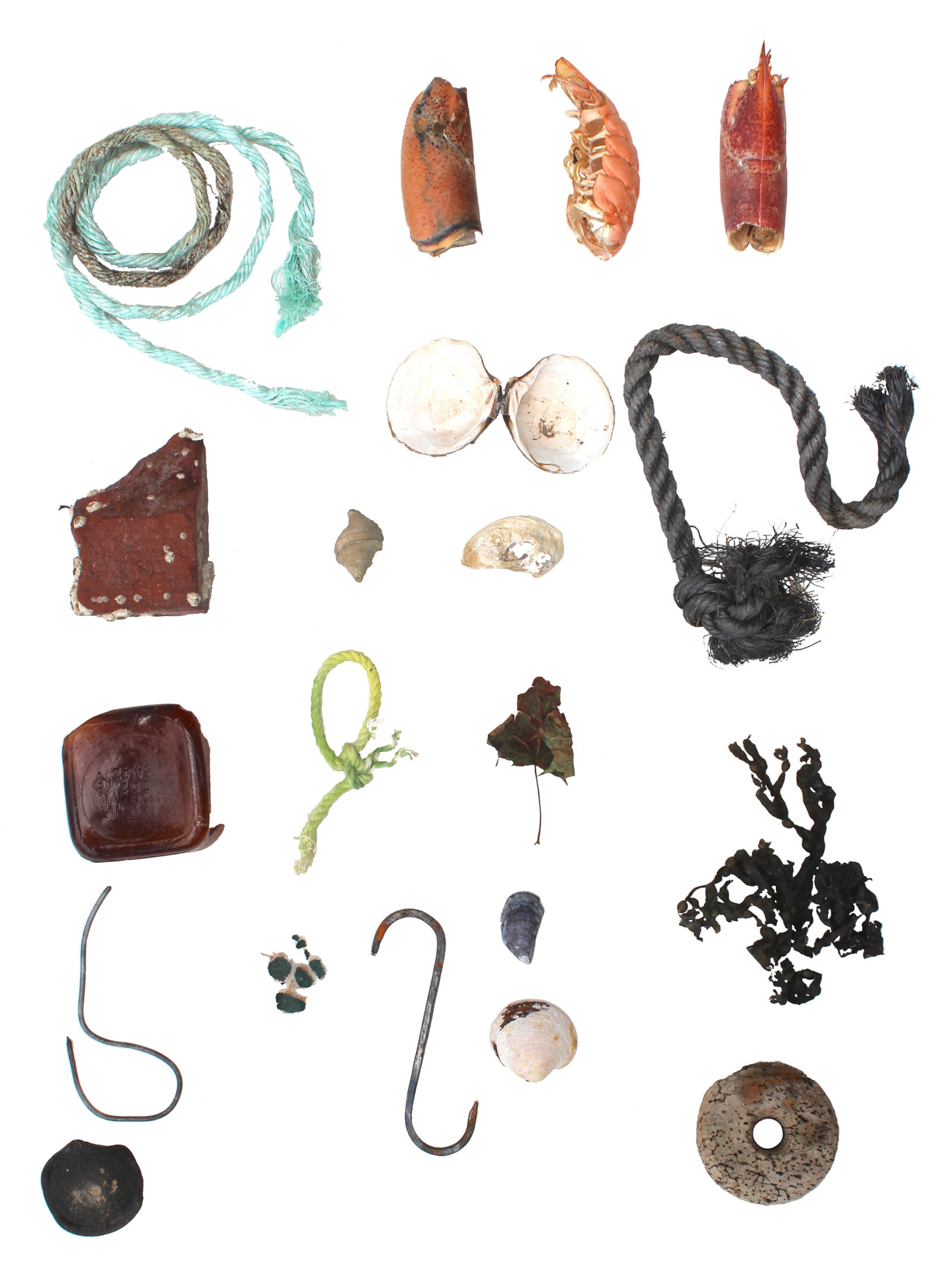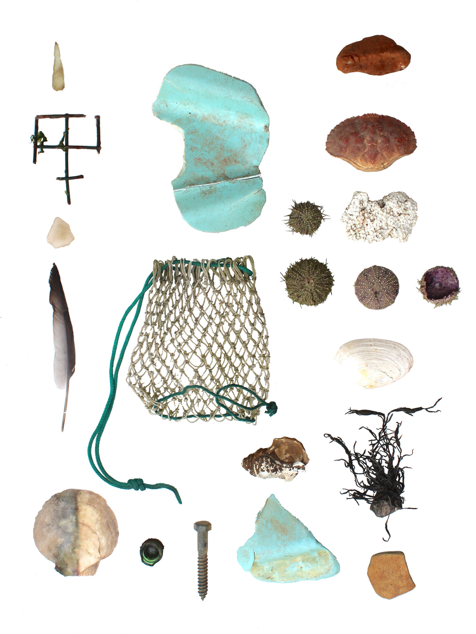 Objects of Land and Sea is comprised of a collection of found objects along the Eastern-most part of the United States. Not only do forests come in close contact to shorelines, debris is scattered in between.
