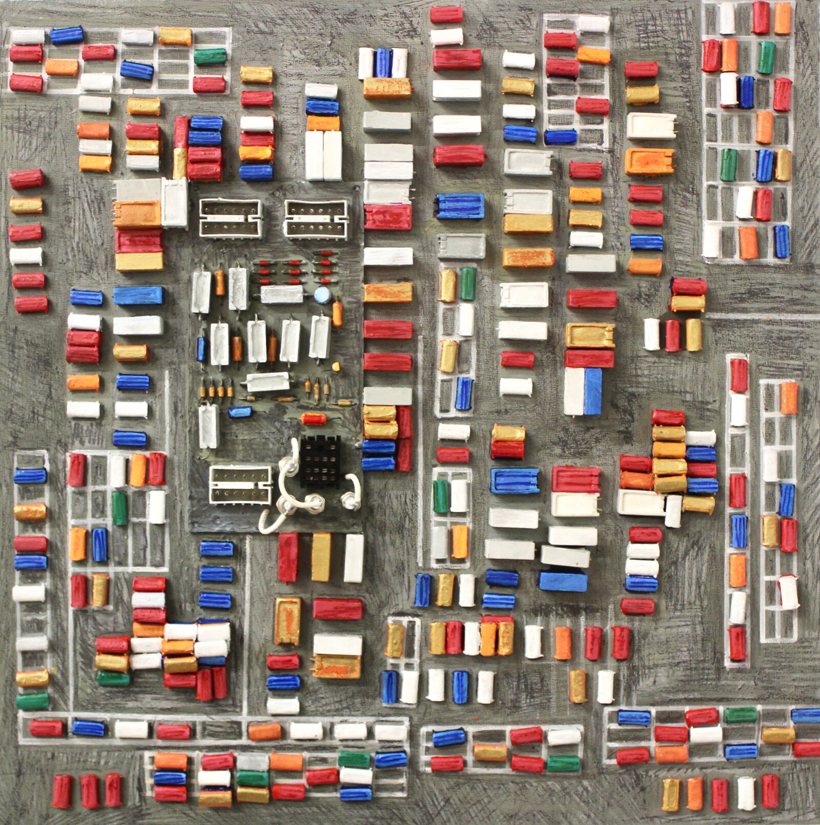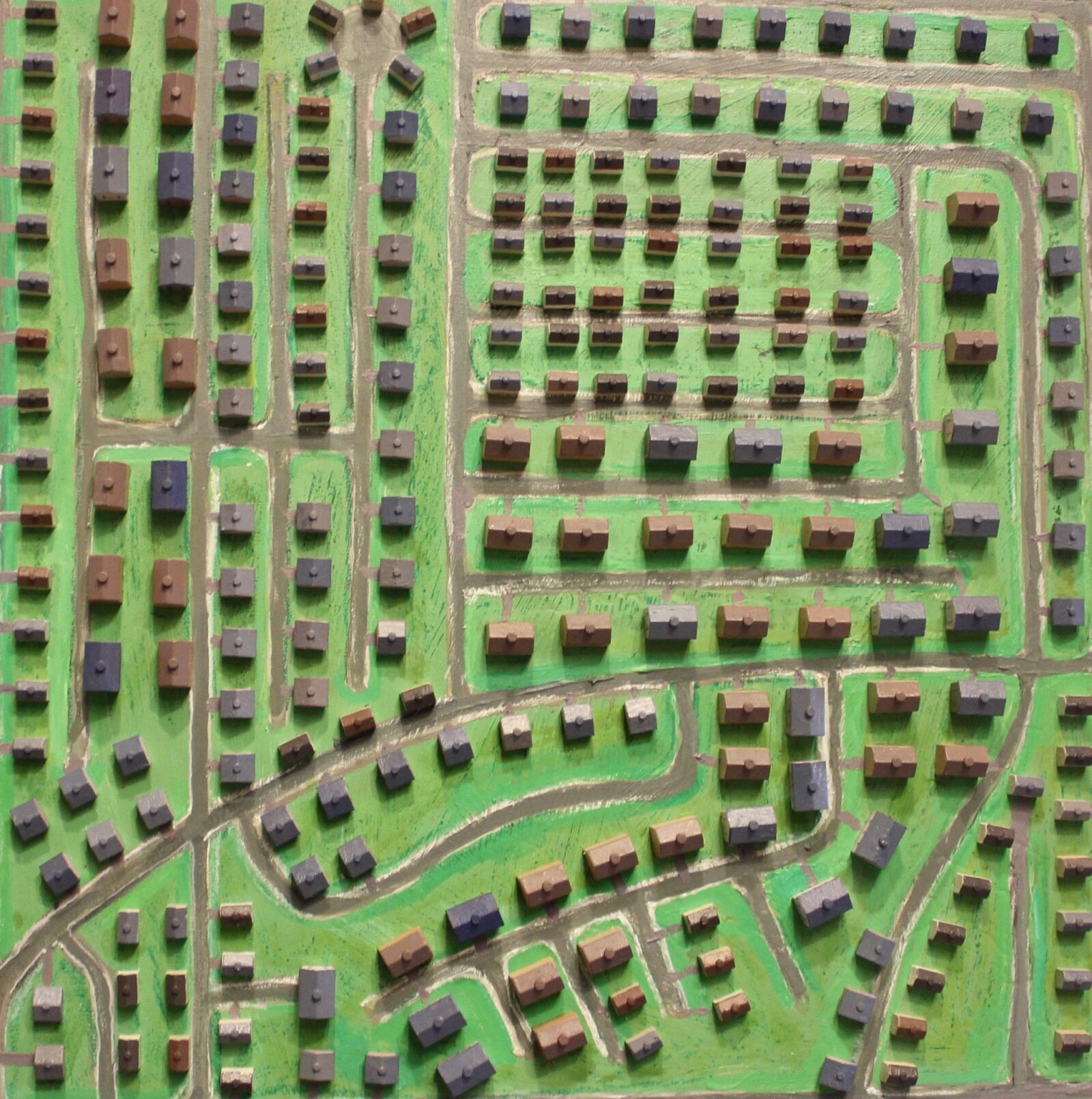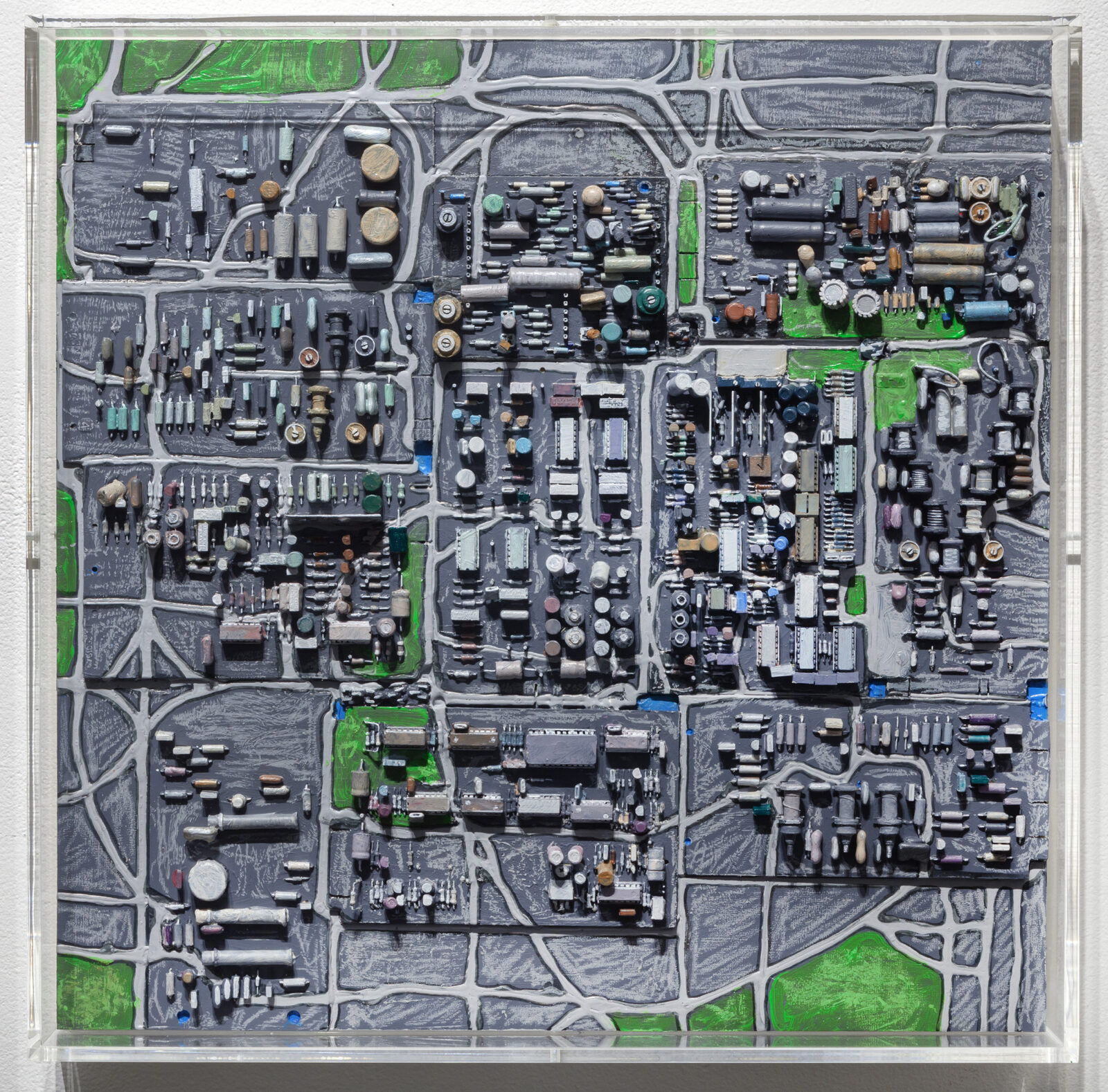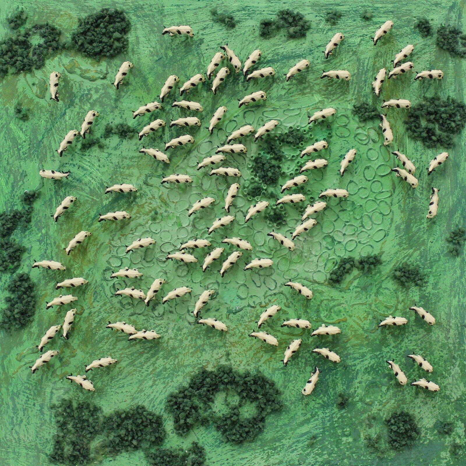 Organized Chaos is a series of mixed media depictions of populations, migrations, and urbanization from an aerial perspective. Works created using Planet Explorer Beta, an online mapping service driven by data from over a hundred CubeSat “Dove” satellites provided by Planet Labs, an Earth-imaging company. This series references the ways humans and animals self-organize forming similar patterns in behavior and order.