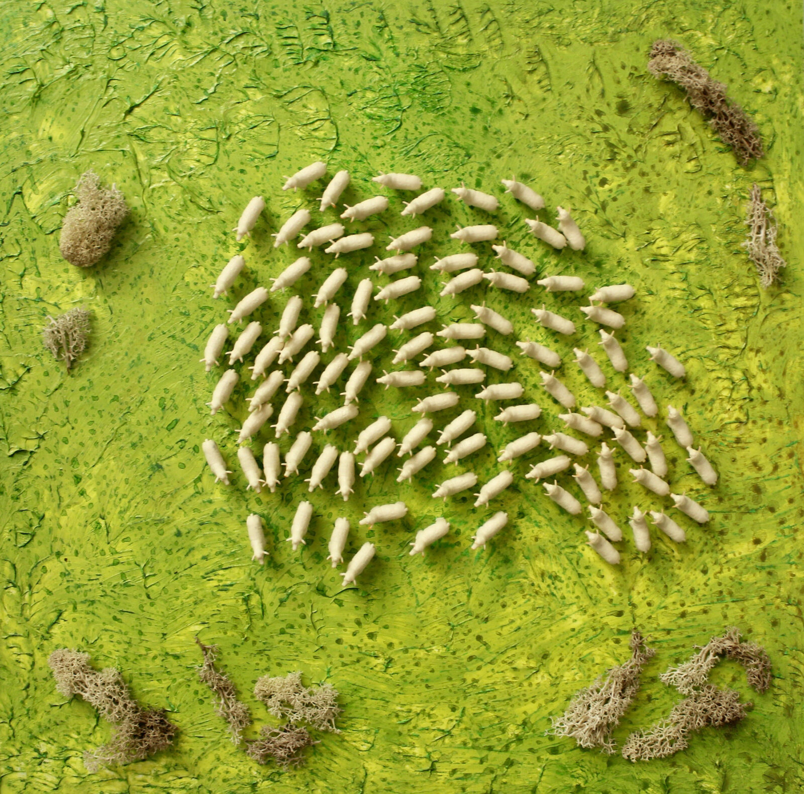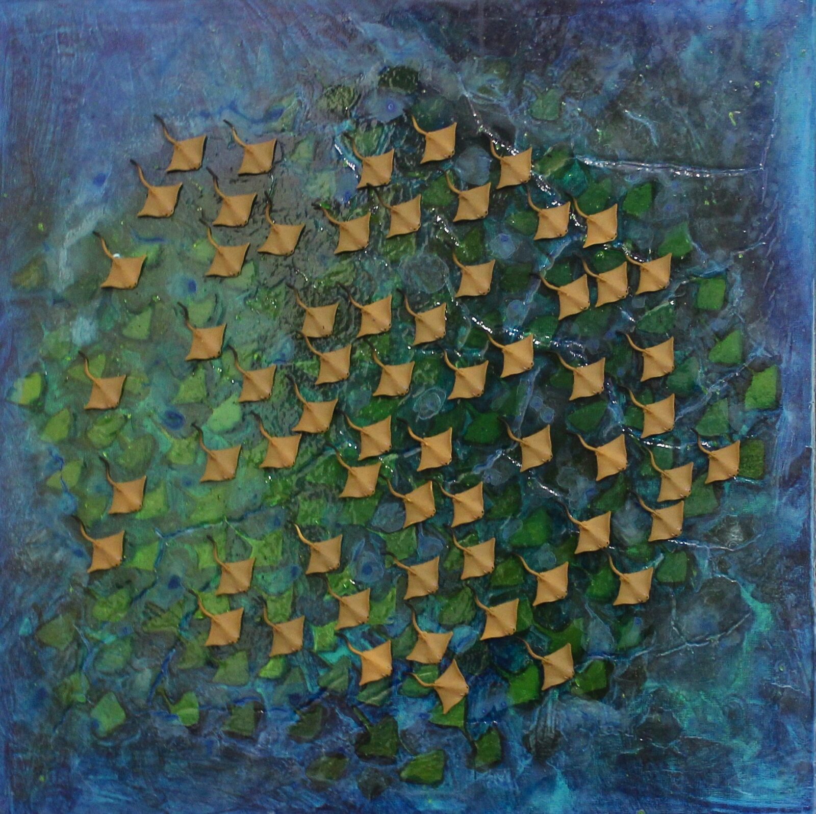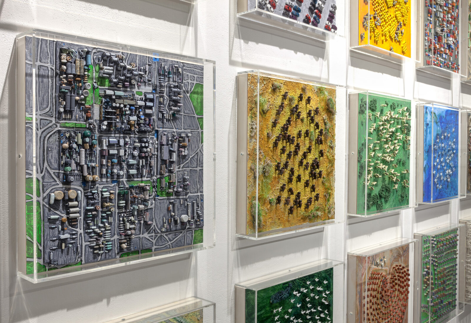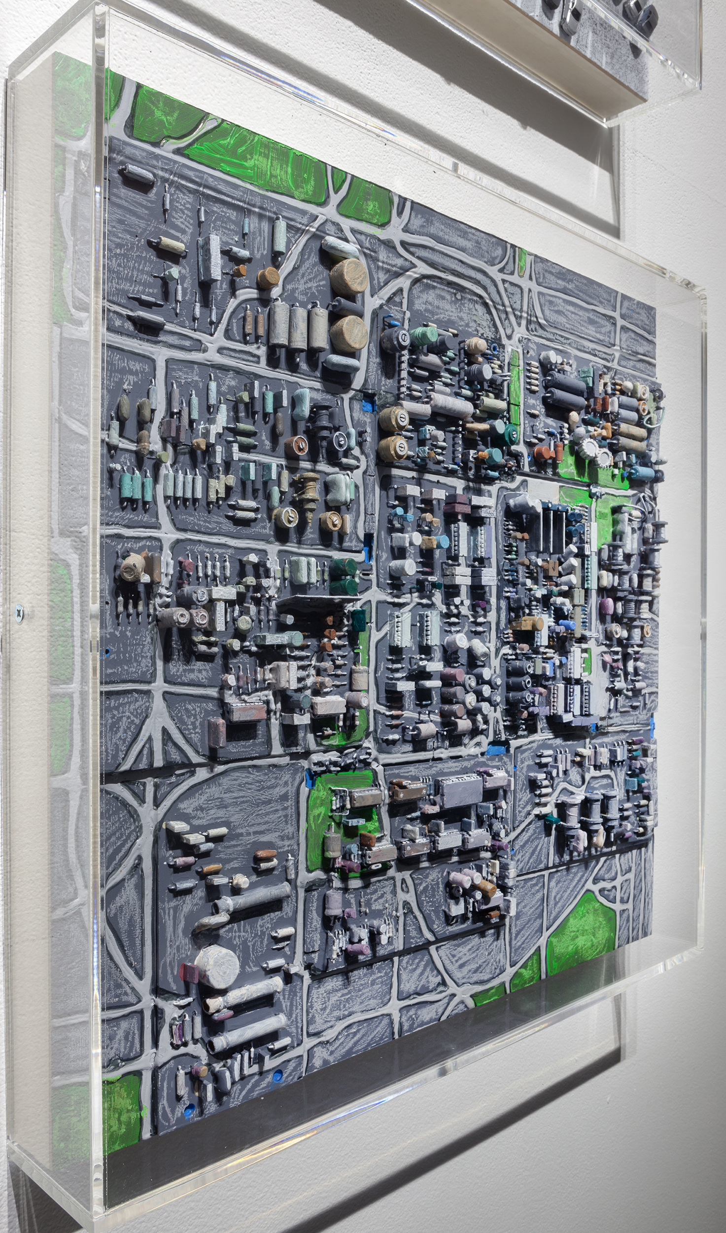 Organized Chaos is a series of mixed media depictions of populations, migrations, and urbanization from an aerial perspective. Works created using Planet Explorer Beta, an online mapping service driven by data from over a hundred CubeSat “Dove” satellites provided by Planet Labs, an Earth-imaging company. This series references the ways humans and animals self-organize forming similar patterns in behavior and order.