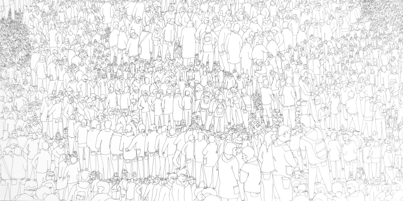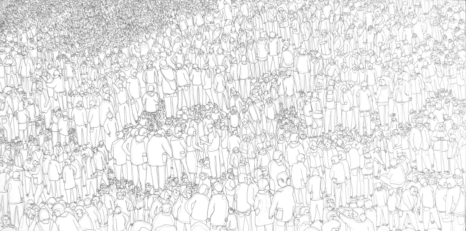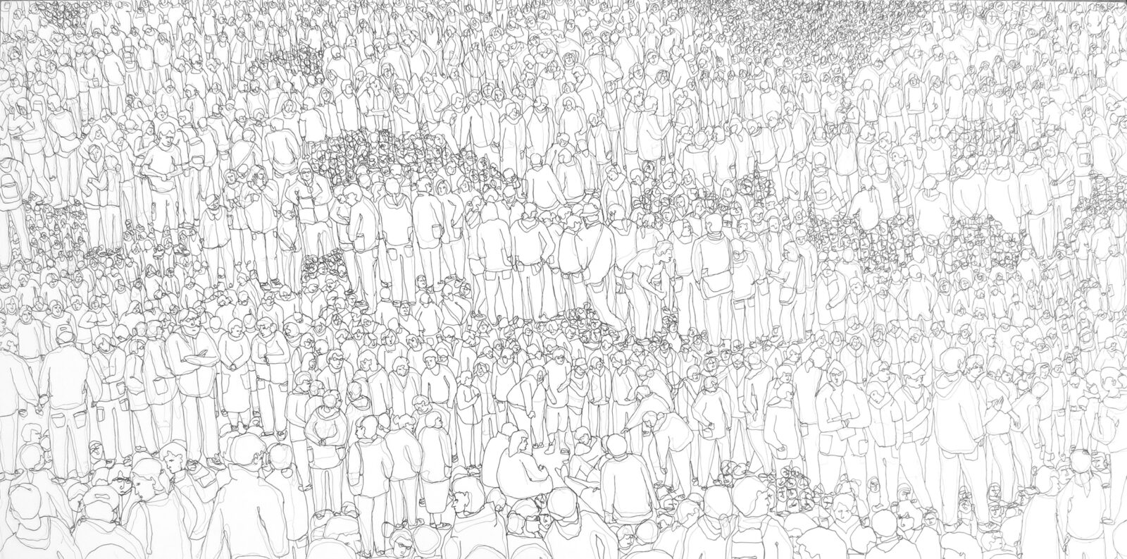 Social Unit, 2011 ink on hardboard 18h x 144w x 1d in /45.7h x 365.8w x 2.54 cm Fig. 1 Fig. 2 Fig. 3 Fig. 4 Fig. 5 Fig. 6 A massive crowd of people drawn with a continuous line to refer to our interconnectivity and co-dependence in social groups. Projects From Neuron to Networked Society, 2012 ← Prev Back Next →