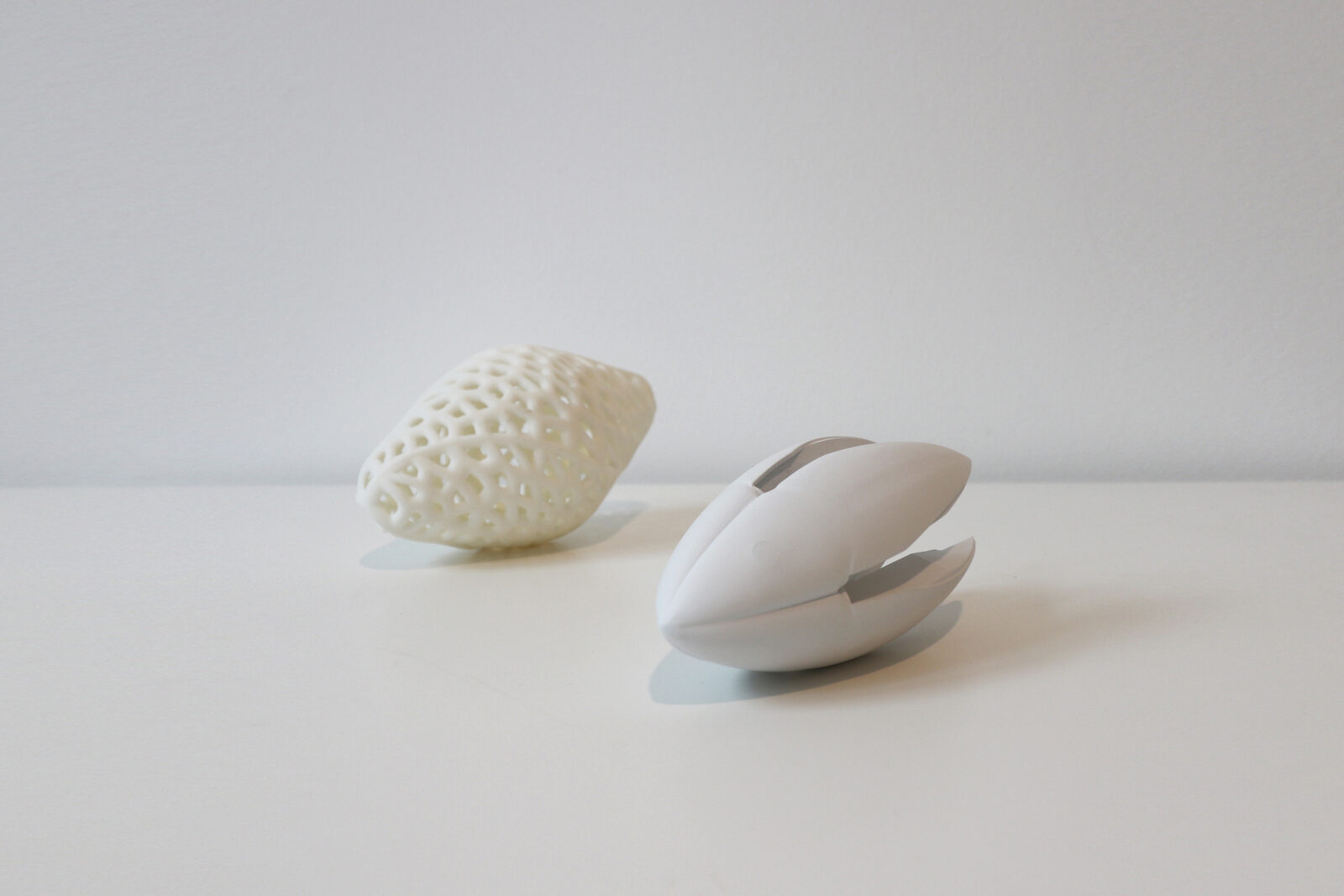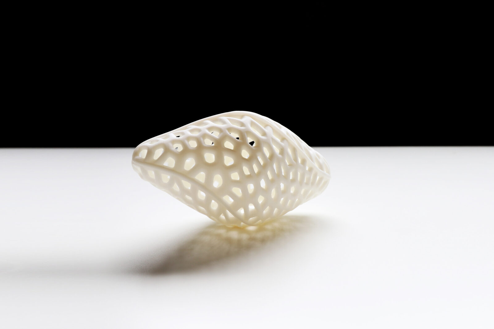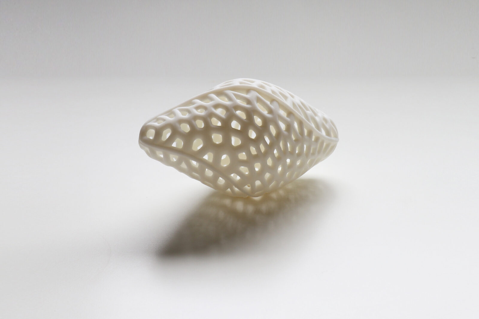 digital render, 3d-printed structure and sheath, iridescent PVC, synthetic DNA with steel capsule
