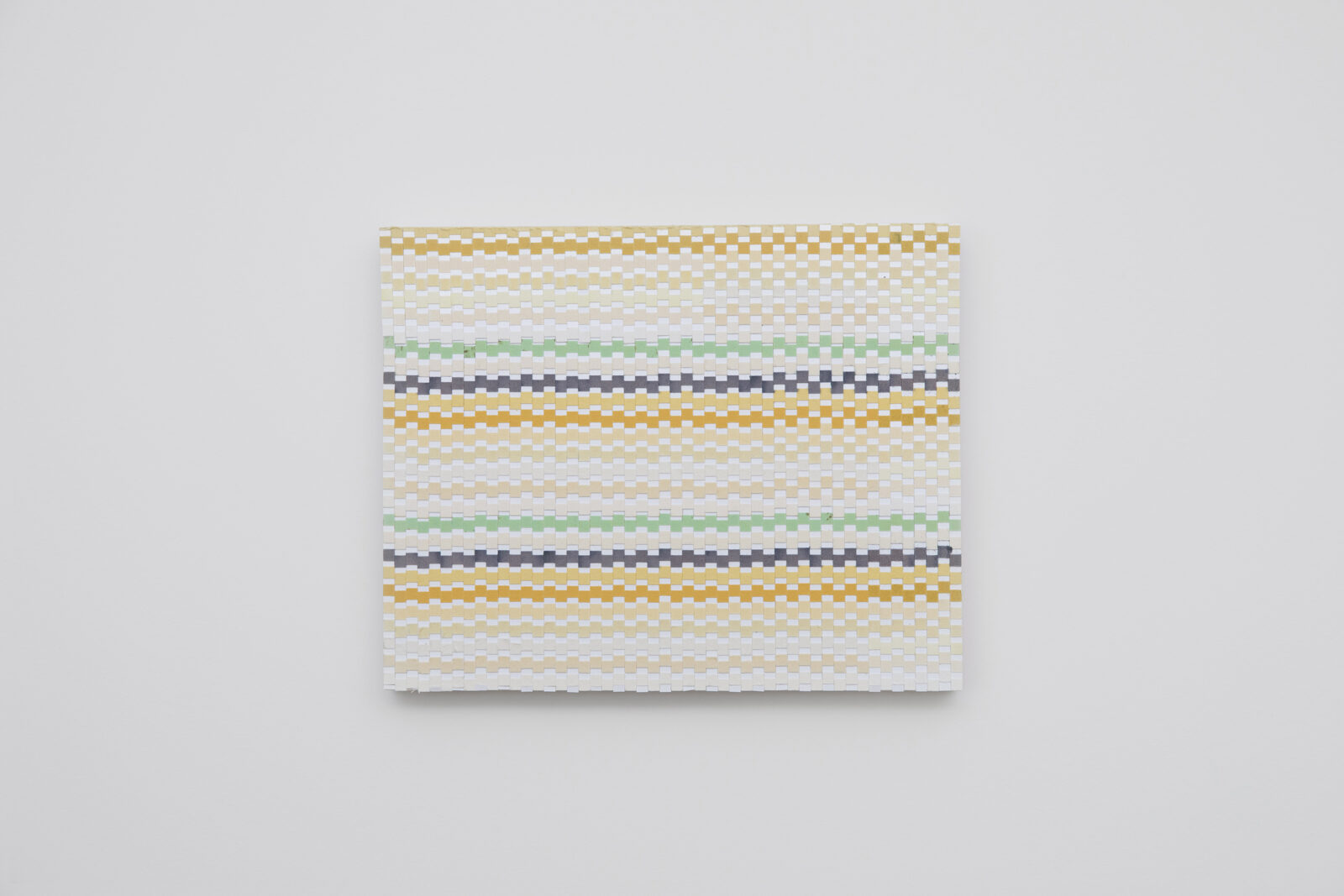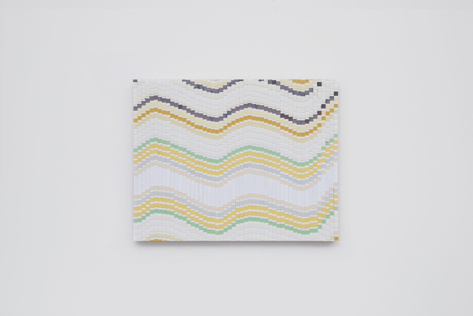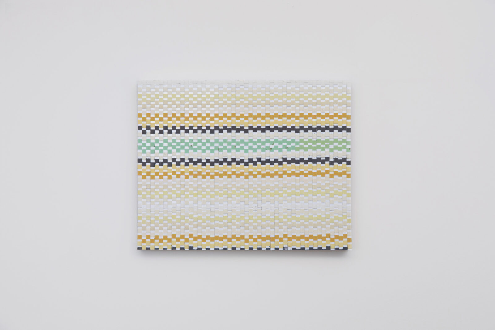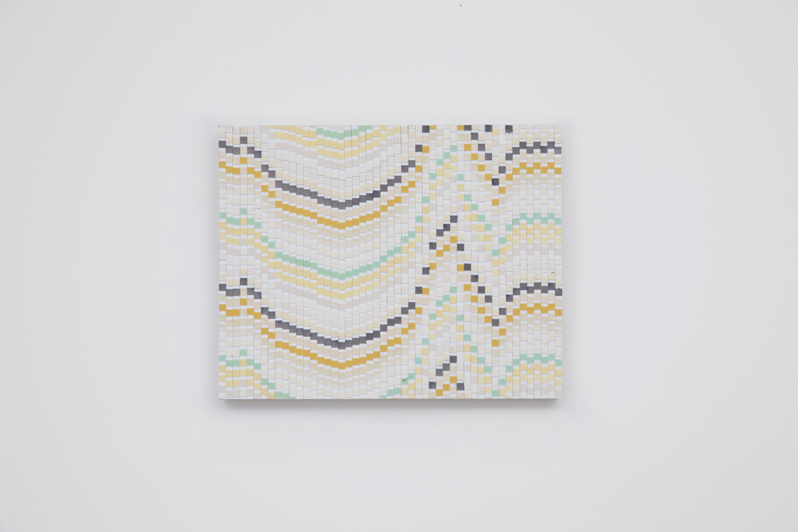 You’re in Analysis is comprised of a collection of urine analysis strips that are used to track systems in the body. During an analog space mission, astronauts in training are required to monitor health and resources, tracking any and all changes in the body over time. The grid of shifting colors references the turbulence and transitions in health data, a graph of change. The color of the strips are also in constant transition based on environmental conditions since it is a biomaterial, reflecting new colors over time.